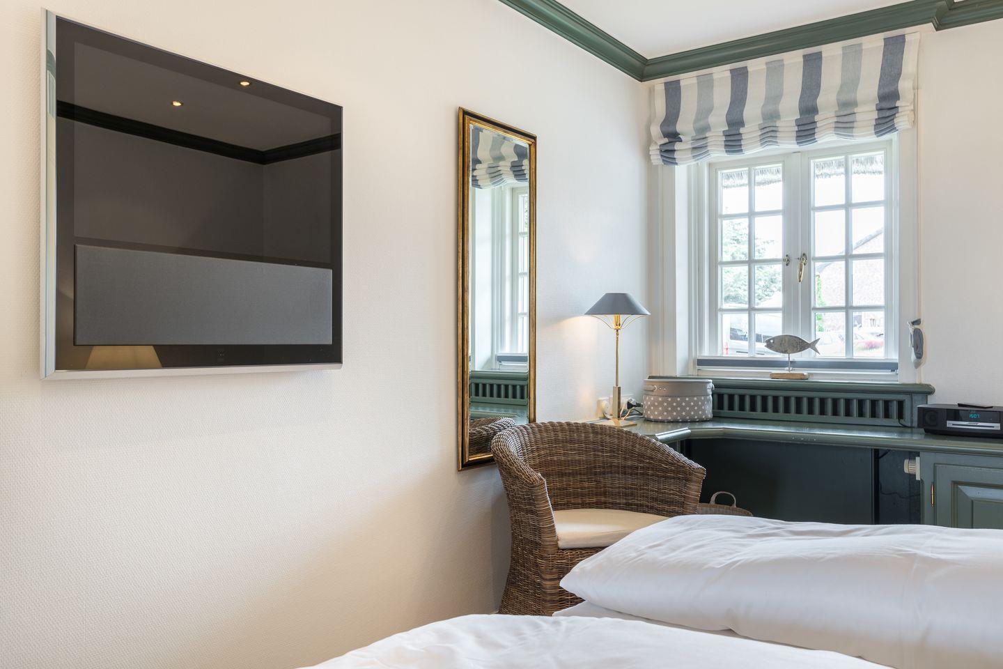 Wohnraum mit TV, iPod-Station, Telefonanschluss und WLAN. Küche mit Microwellen-Backofen-Kombination. Bad mit Dusche und WC sowie Gäste-WC. Terrasse mit Gartenmöblen und Strandkorb (ca. April - Oktober).