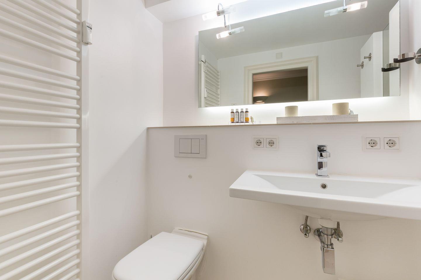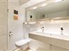 Untergeschoss: 2 großzügige Wohlfühlbäder mit Fußbodenheizung, integrierten Haartrocknern und begehbaren Duschen, davon eines mit Dusche/WC, das zweite mit Wanne, Dusche, WC und Stereo-Soundsystem. Ein großzügiger, sehr schön gestalteter Raum mit Luxusdoppelbett (fennobed continental), Flat-TV, Teac-Canton-Hifianlage und viel Schrankplatz (hochwertige Tischlereinbauten). Kleiner Hauswirtschaftsraum mit kombiniertem Waschmaschinen-Trocknerautomat und etwas Stauraum.