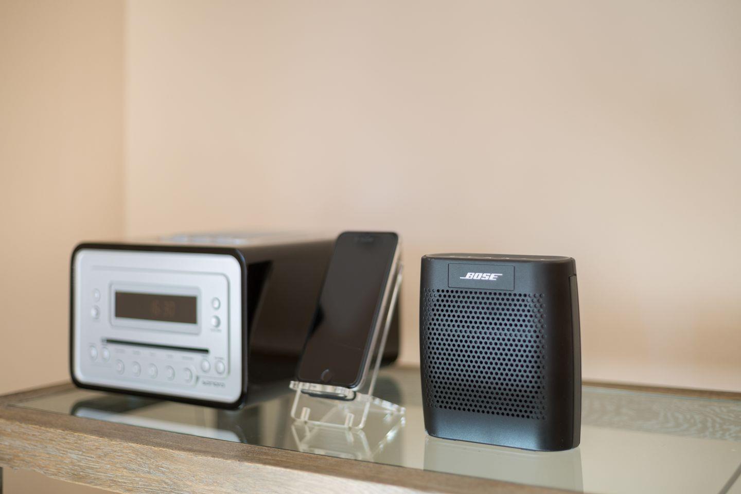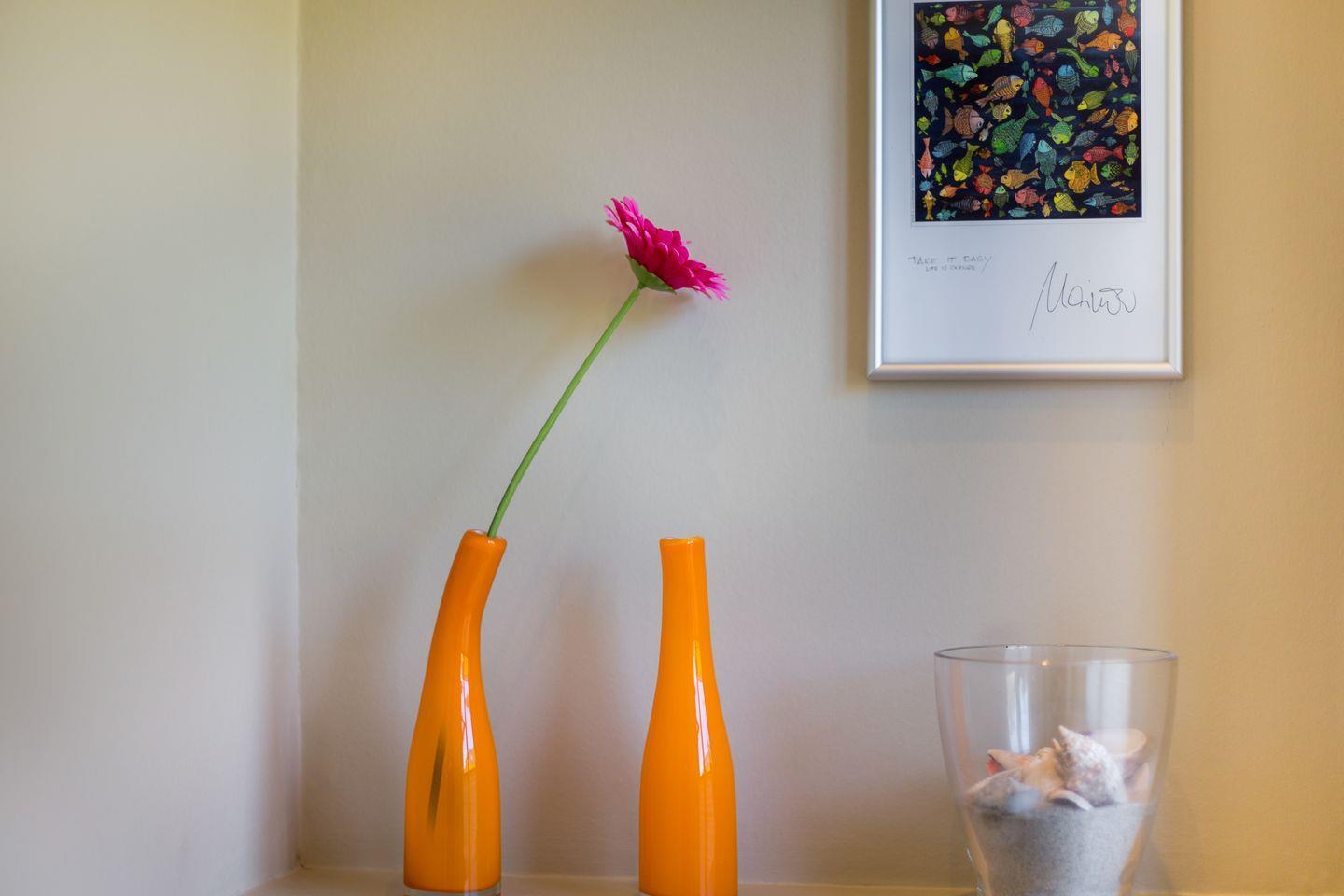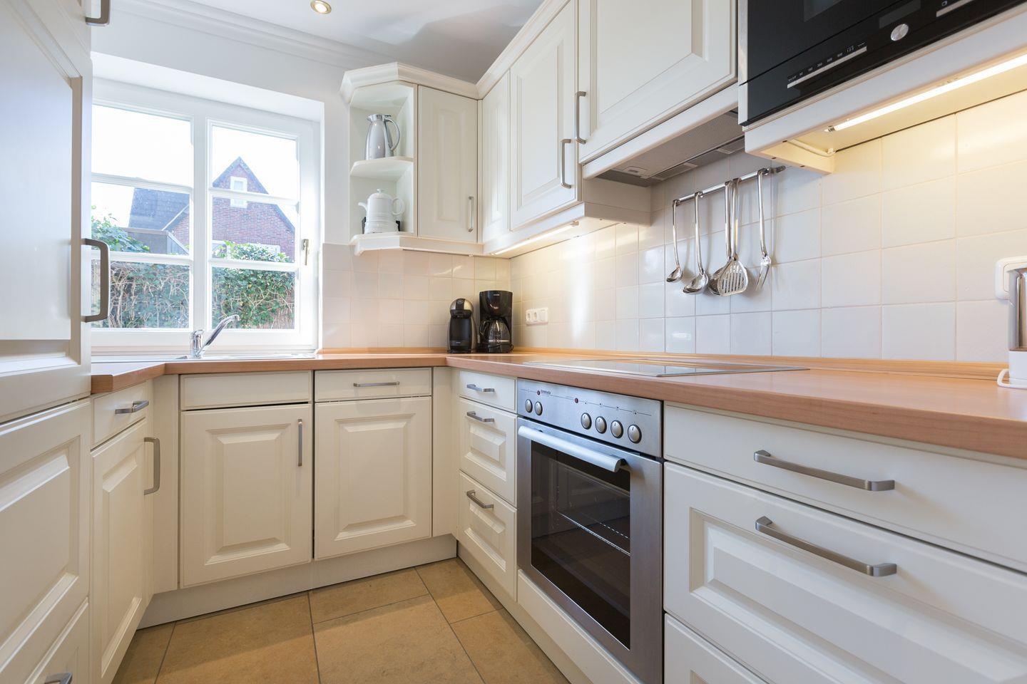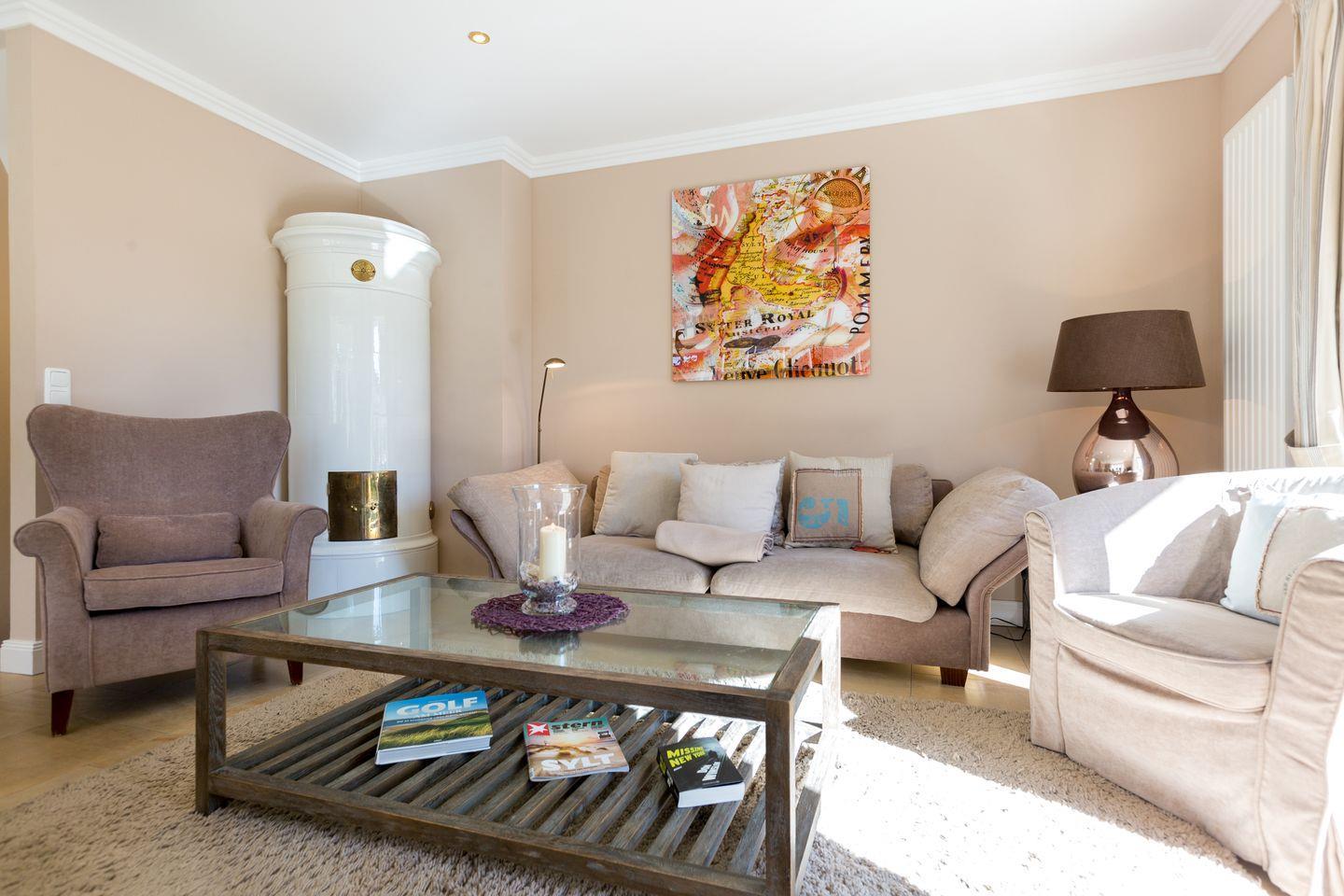 EG: Hochwertig und sehr geschmackvoll möblierter Wohnraum mit Flatscreen-TV, DVD-Player, Bose Colour Station mit Bluetooth, Telefon, kleine Südterrasse. Küche mit Geschirrspüler, Backofen, Mikrowelle. Gäste-WC.