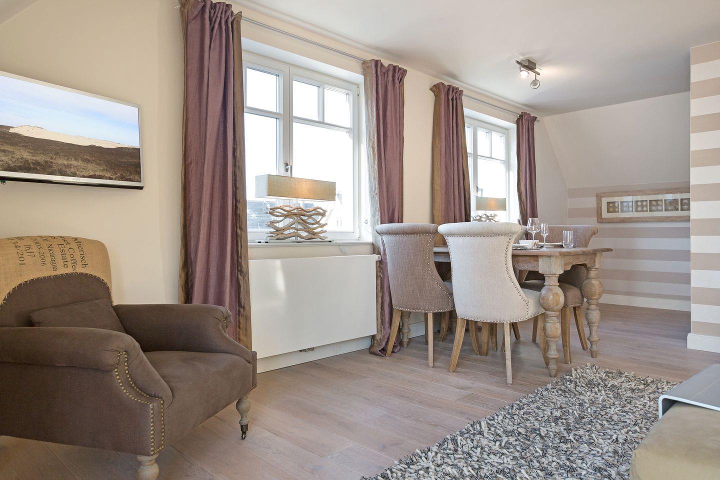 Erleben Sie einen der beliebtesten Urlaubsorte der Insel Sylt – Wenningstedt. Dieses moderne Feriendomizil befindet sich unweit vom Strand und vom Wenningstedter Dorfteich. Die Obergeschosswohnung bietet Ihnen ein lichtdurchflutetes Wohnzimmer mit einer gemütlichen Sofaecke und einem großzügigen Essbereich.