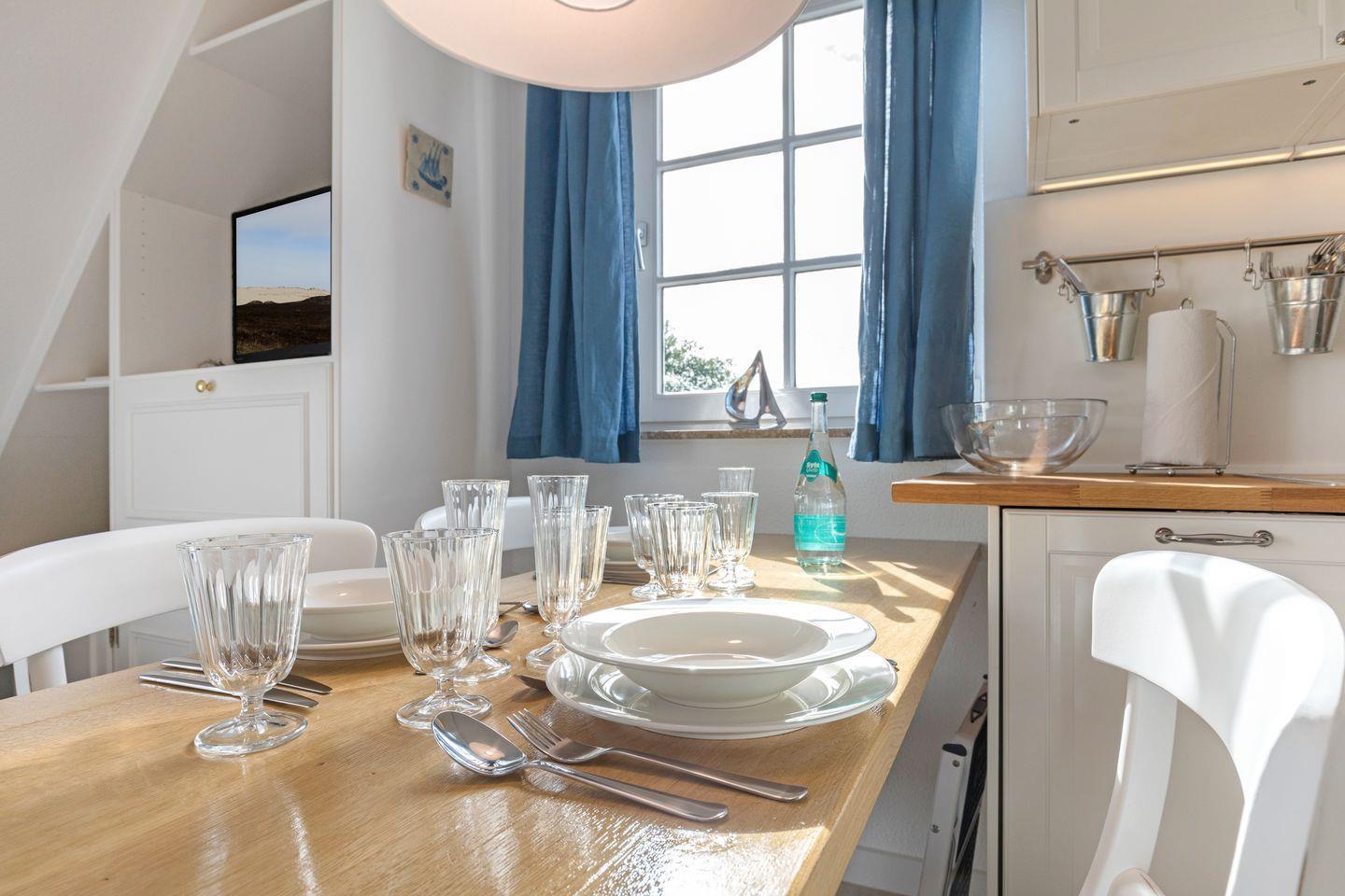 Sie möchten einfach mal raus kommen und den stressigen Alltag hinter sich lassen? Dann ist Sylt genau die richtige Ferienadresse für Sie! In diesem lichtdurchfluteten Feriendomizil in Wenningstedt fällt es leicht, sich im Urlaub pudelwohl zu fühlen. Das Appartement ist in einem modernen Landhausstil eingerichtet und das Wohnzimmer mit offener, voll ausgestatteter Küche lädt zum Verweilen ein. Vom Wohnzimmer aus können Sie auf die großzügige, möblierte Sonnenterrasse treten. Ein leckeres Essen zu zweit oder ein Spieleabend mit der ganzen Familie werden hier zum perfekten Sommer-Urlaubserlebnis.