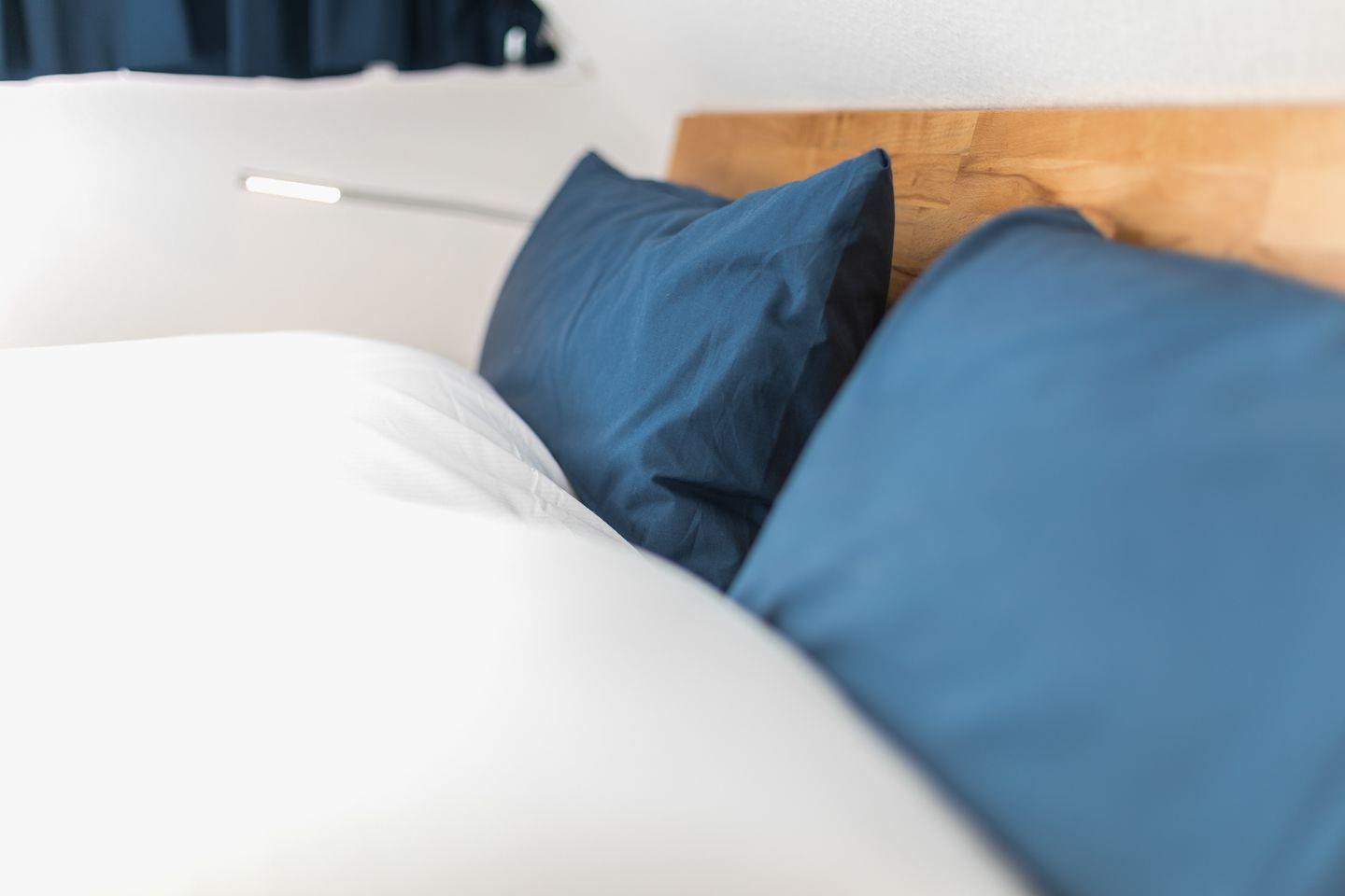 Im gleichen Geschoss wie die Wohnküche befindet sich ein Tageslichtbad mit Dusche und ein kleines Schlafzimmer mit einem gemütlichen Einzelbett und einem zusätzlichen Ausziehbett in einer Nische. Im Dachgeschoss finden Sie dann ein weiteres Schlafzimmer mit einem großzügigen Doppelbett.