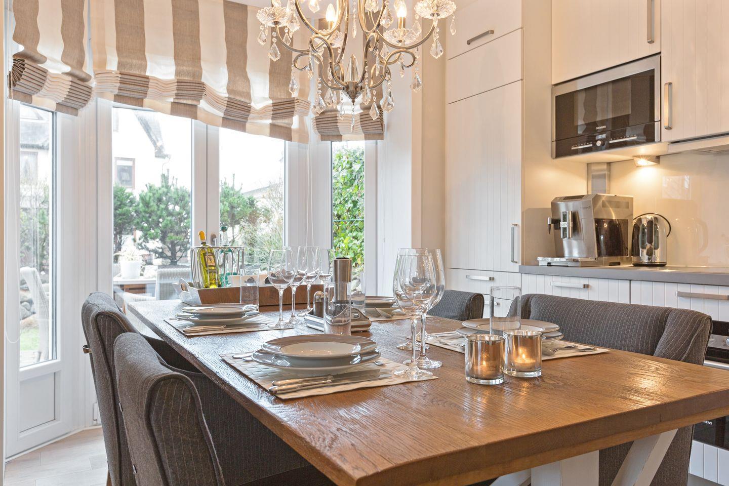 EG: Freuen Sie sich auf Ihren großzügigen, sehr geschmackvoll möblierten Wohnraum. Das feine Mobiliar und die edlen Einbauten schaffen ein luftiges Strand-Wohlfühlambiente. Großer Smart-TV inkl. Netflix, Amazon Prime etc., iPod Dock, Sonos Box und WLAN mit maximal schnellem Internet verstehen sich von selbst. Sehr schöne Esstafel für die ganze Familie. Offene Luxusküche mit Geschirrspüler, Nespresso-Maschine, Microwelle und Backofen. Internet mit einer schnellen 50.000 VDSL Leitung.