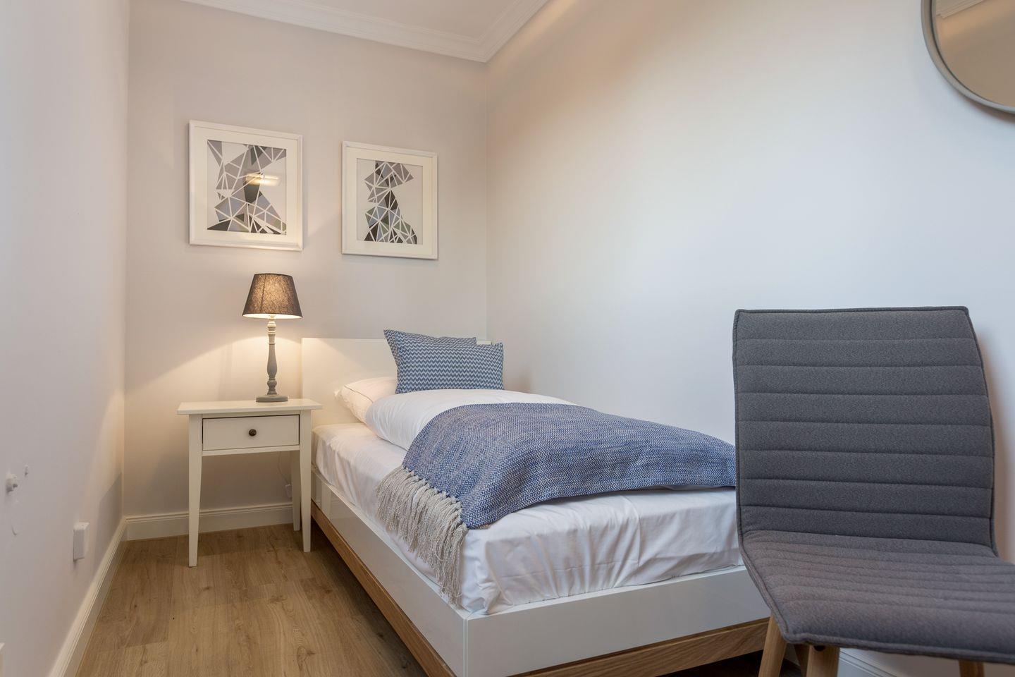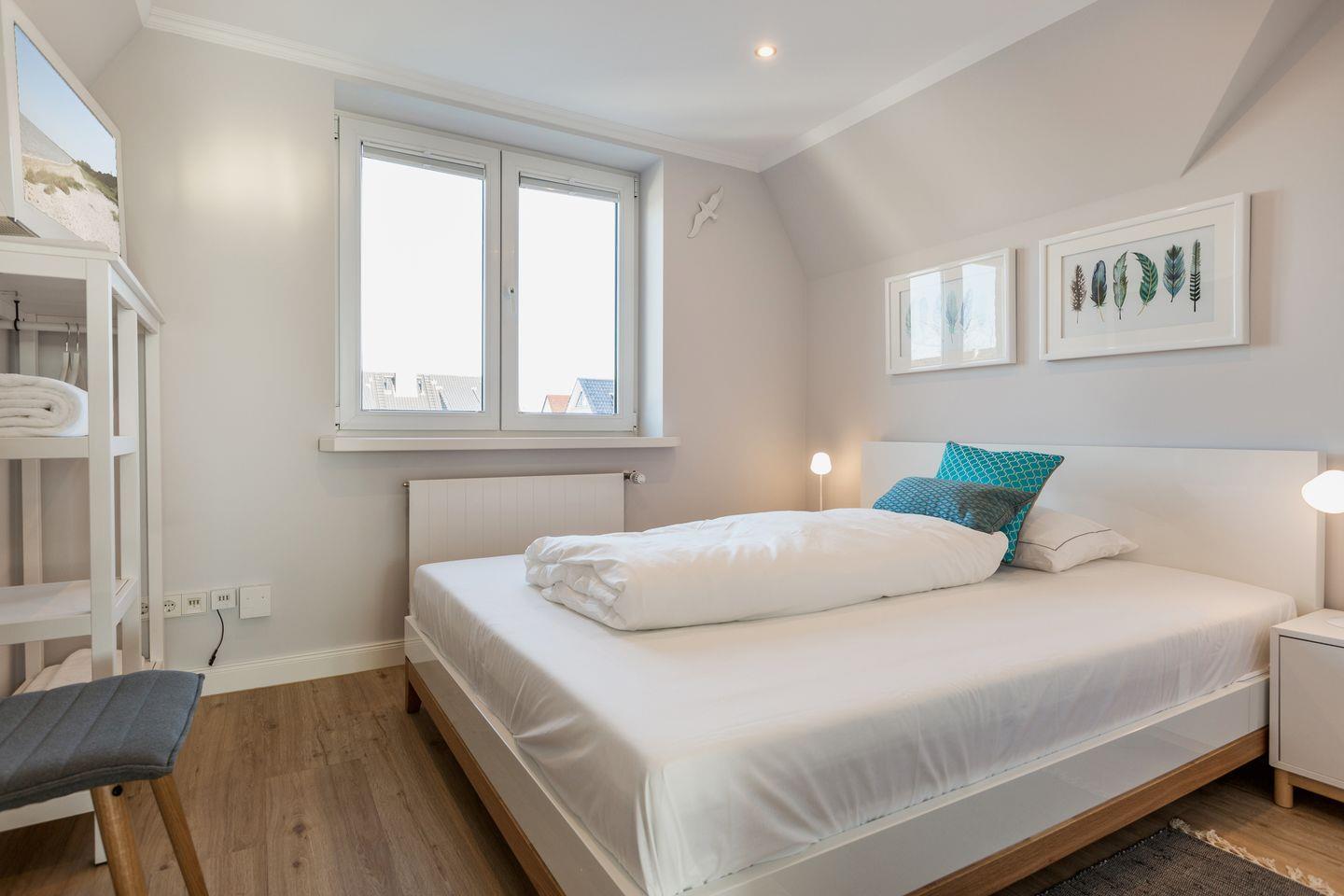 Im Obergeschoss des Hauses erwarten Sie zwei große Schlafräume mit je einem Doppelbett. Eines der Schlafzimmer verfügt über ein Bad en Suite mit Tageslicht, Badewanne und Regendusche. Ein weiteres Tageslicht-Bad mit Dusche ist vom Flur aus zu erreichen, außerdem finden Sie im Obergeschoss ein weiteres Schlafzimmer mit französischem Bett. Das Dachgeschoss des Hauses verfügt über ein Schlafzimmer mit zwei Einzelbetten sowie über einen weiteren Raum mit gemütlichem Sofa und Flatscreen-TV.