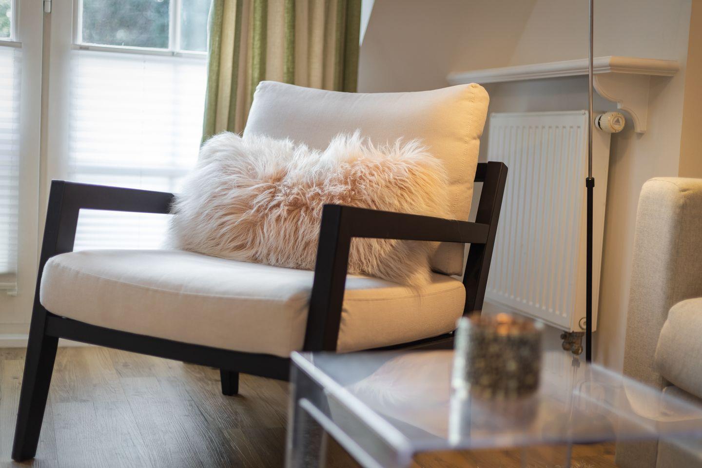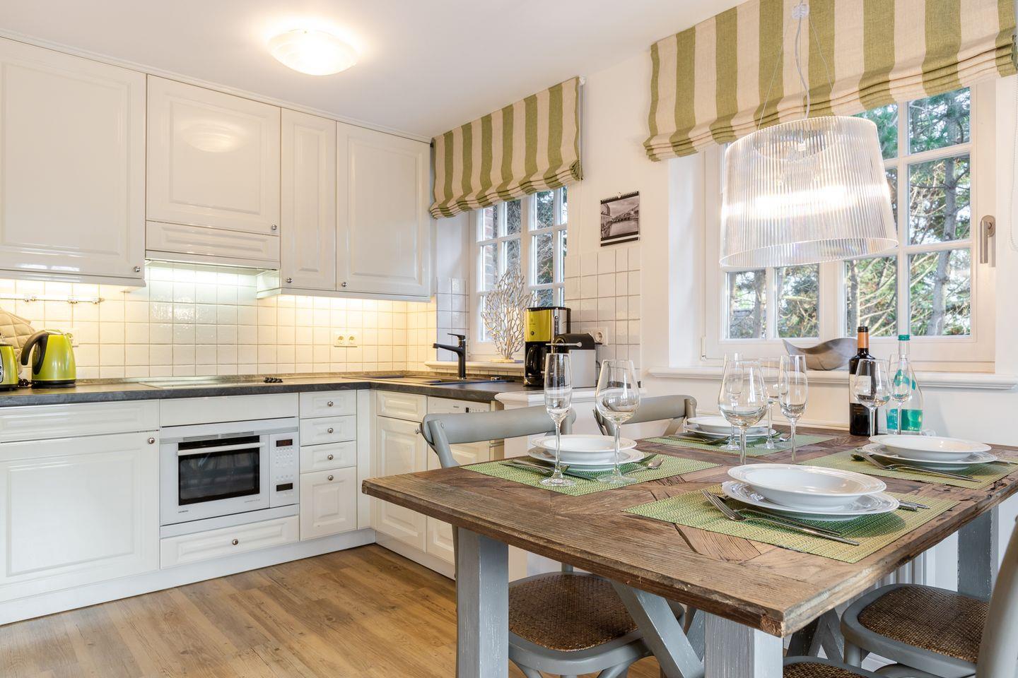 Obergeschoss: Sehr geschmackvoll und hochwertig eingerichteter, heller Wohnraum mit Kabel-TV, Hifi-Anlage und Telefon. Integrierte Küche im Friesenstil mit Geschirrspüler, Mikrowellen-Backofen Kombination und einer Nespresso Kaffeemaschine. 1 Schlafraum mit eingebautem Etagenbett (unten 90x200cm & oben 90x180cm) Dusche/WC.