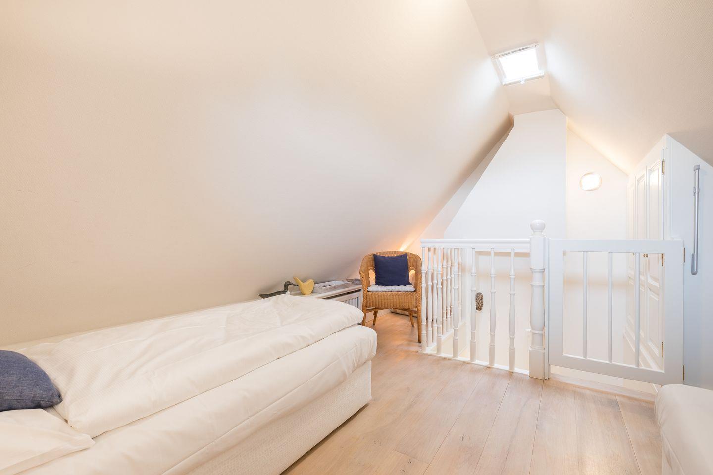 Wunderschöne Eichendielen, wohin das Auge auch fällt. Perfekte Tischlerarbeiten. Einmalige Lage, im Dachgeschoss sogar mit kleinem Meerblick. Eine gekonnte Melange aus kuscheligem Landhaus und Sylter Lifestyle.