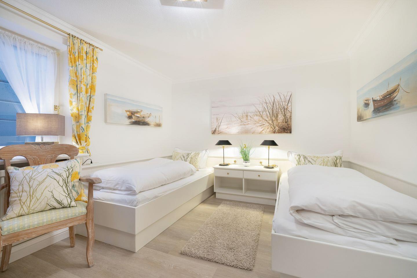 UG: 1 Raum mit Doppelbett (180x200cm) sowie 1 Schlafraum mit getrennten Betten (90x200cm), TV, Video. Wannenbad mit Dusche und WC. Waschmaschine und Trockner. Sehr attraktive und großzügige Süd-Terrasse mit Strandkorb (ca. von April- Oktober) und Gartenmöbeln. Parkplatz.