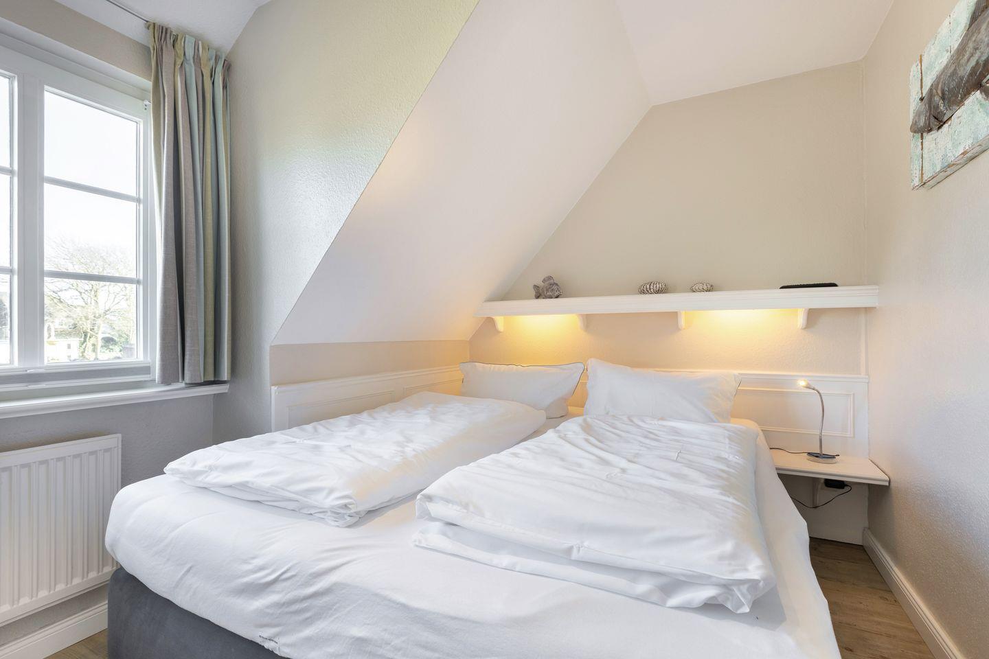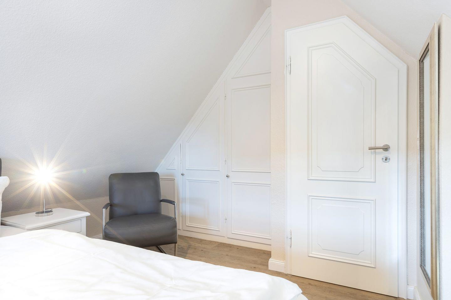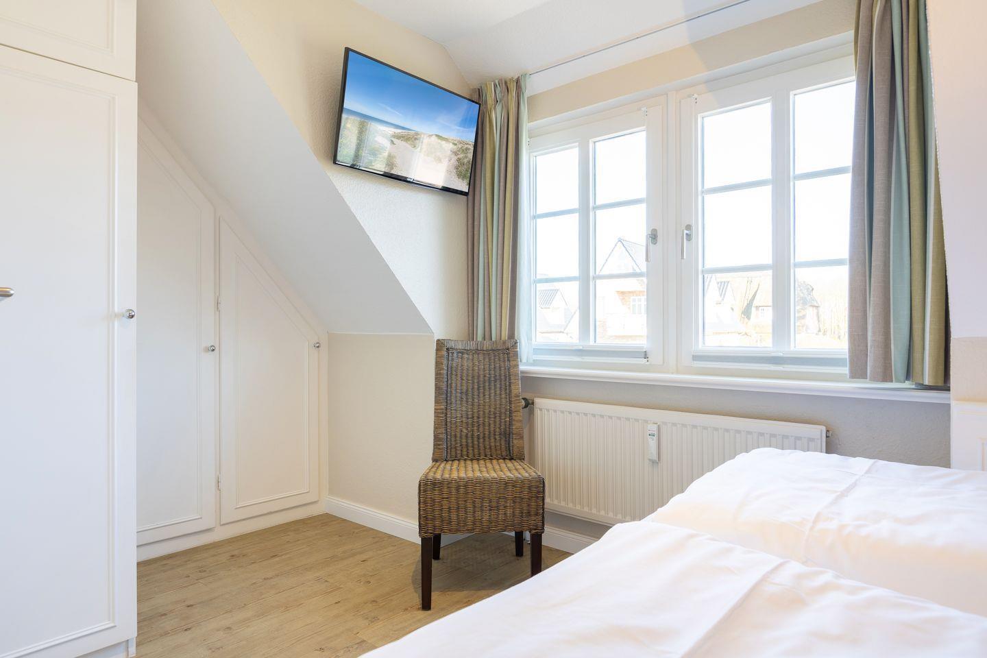 Dachgeschoss: Schlafraum mit Doppelbett (180x200). Flatscreen TV.