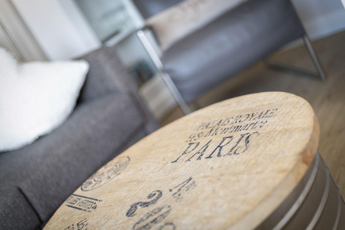 Obergeschoss: Wohnraum mit Flatscreen-TV, W-Lan, Radio und Blu-Ray Player, Essbereich, Küchenzeile mit Backofen-Mikrowellenkombination, Geschirrspülmaschine, Kaffee- und Kapselmaschine. Badezimmer mit Dusche und WC.