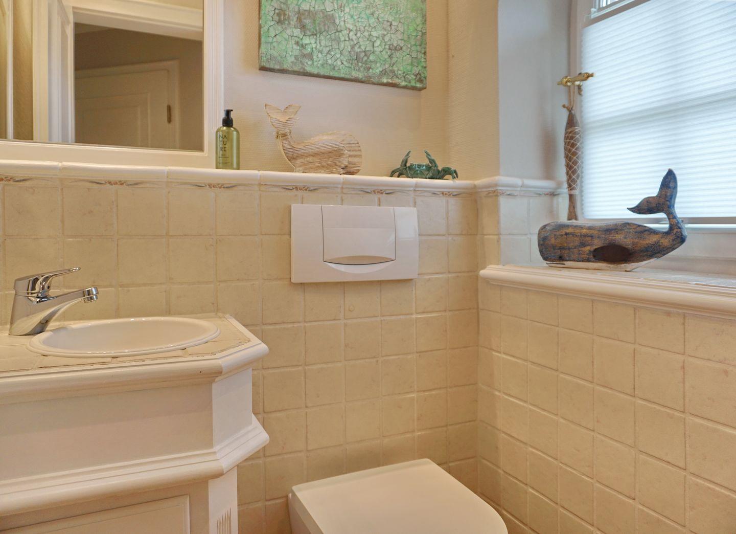 EG: Sehr geschmackvoll und hochwertig eingerichteter Wohnraum mit Kamin, Kabel-TV, Hifi-Anlage und Telefon. Separate Küche mit Geschirrspüler, Microwelle und Backofen. Gäste-WC.