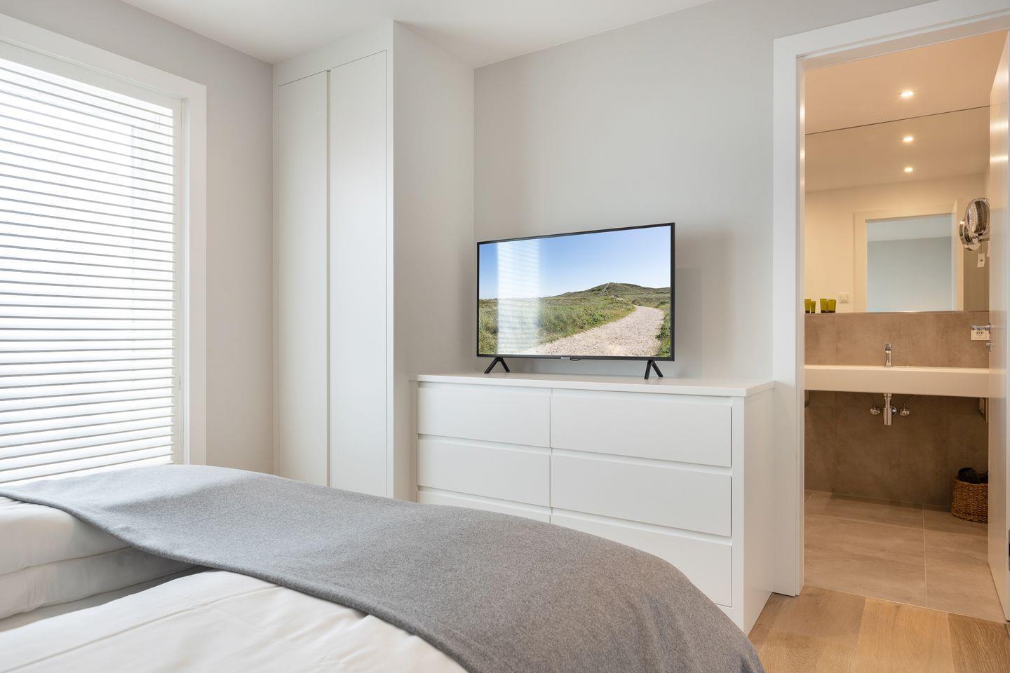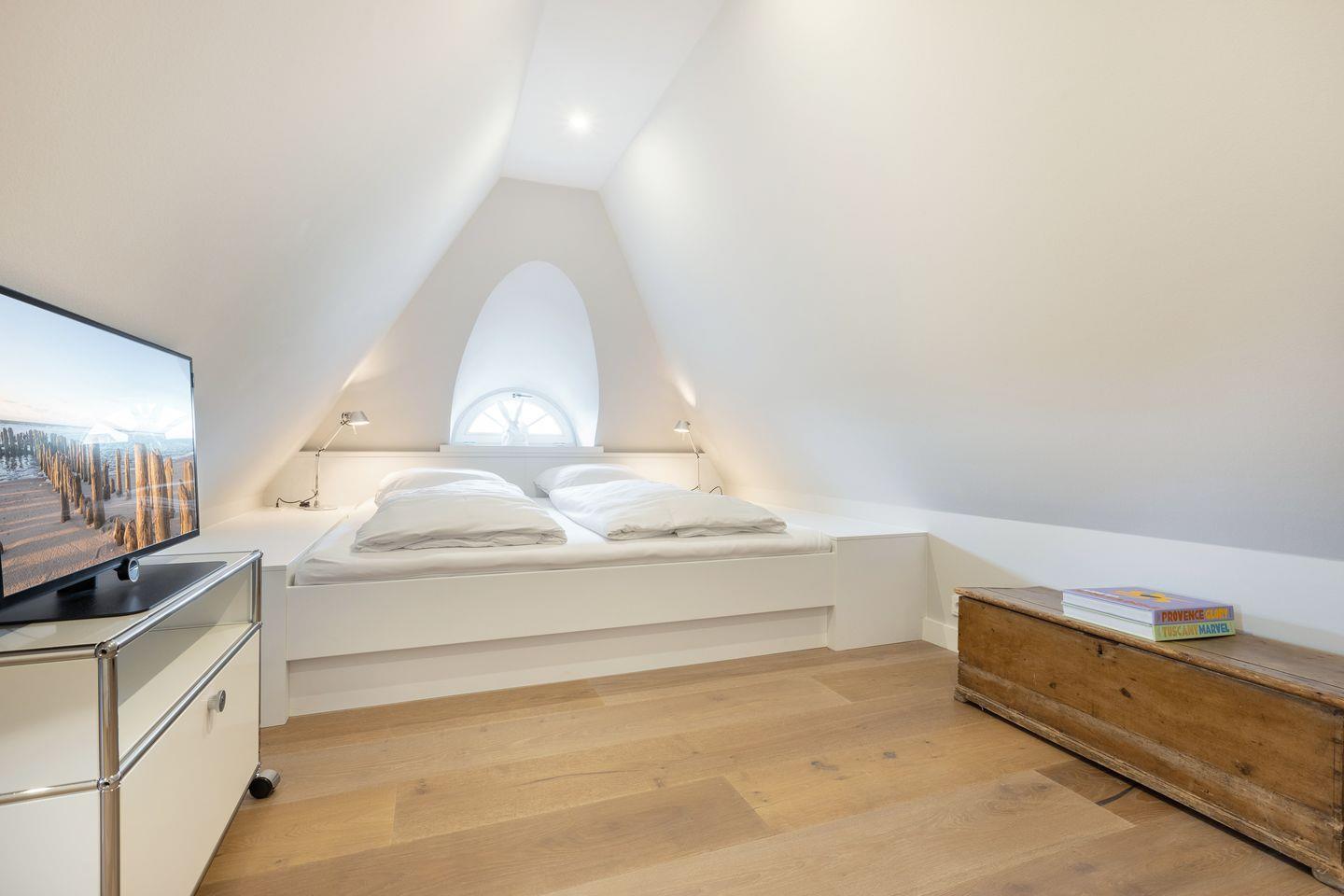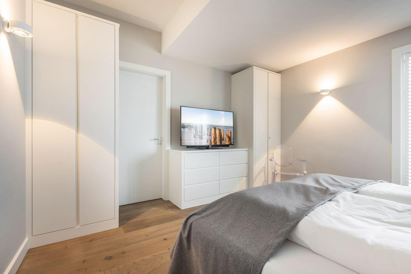 DG: ein Raum mit Doppelbett und TV.