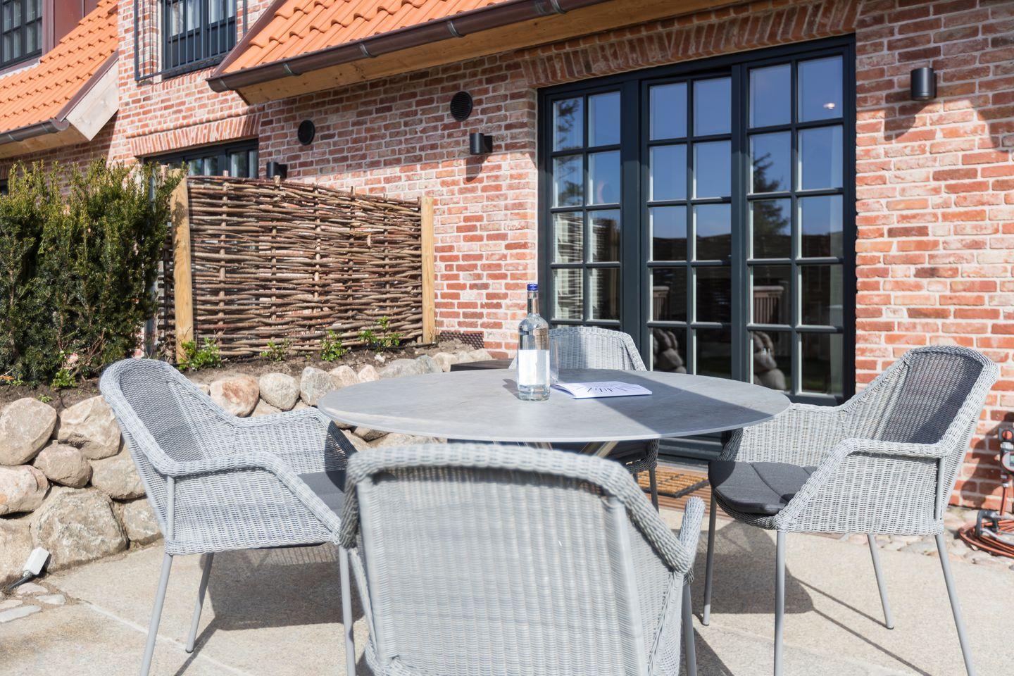 Das Ferienhaus ist Teil einer modernen Wohnanlage mit drei Hausteilen, von denen „Lille Wung“ das Endhaus mit attraktiver Süd-West-Ausrichtung ist. Sowohl die Süd- als auch die Westterrasse, jede mit eigenem Strandkorb, laden an sonnigen Tagen zum Verweilen und Genießen des großzügigen Gartenbereichs ein. Natürlich finden Sie Ihren eigenen Parkplatz direkt auf dem Grundstück.