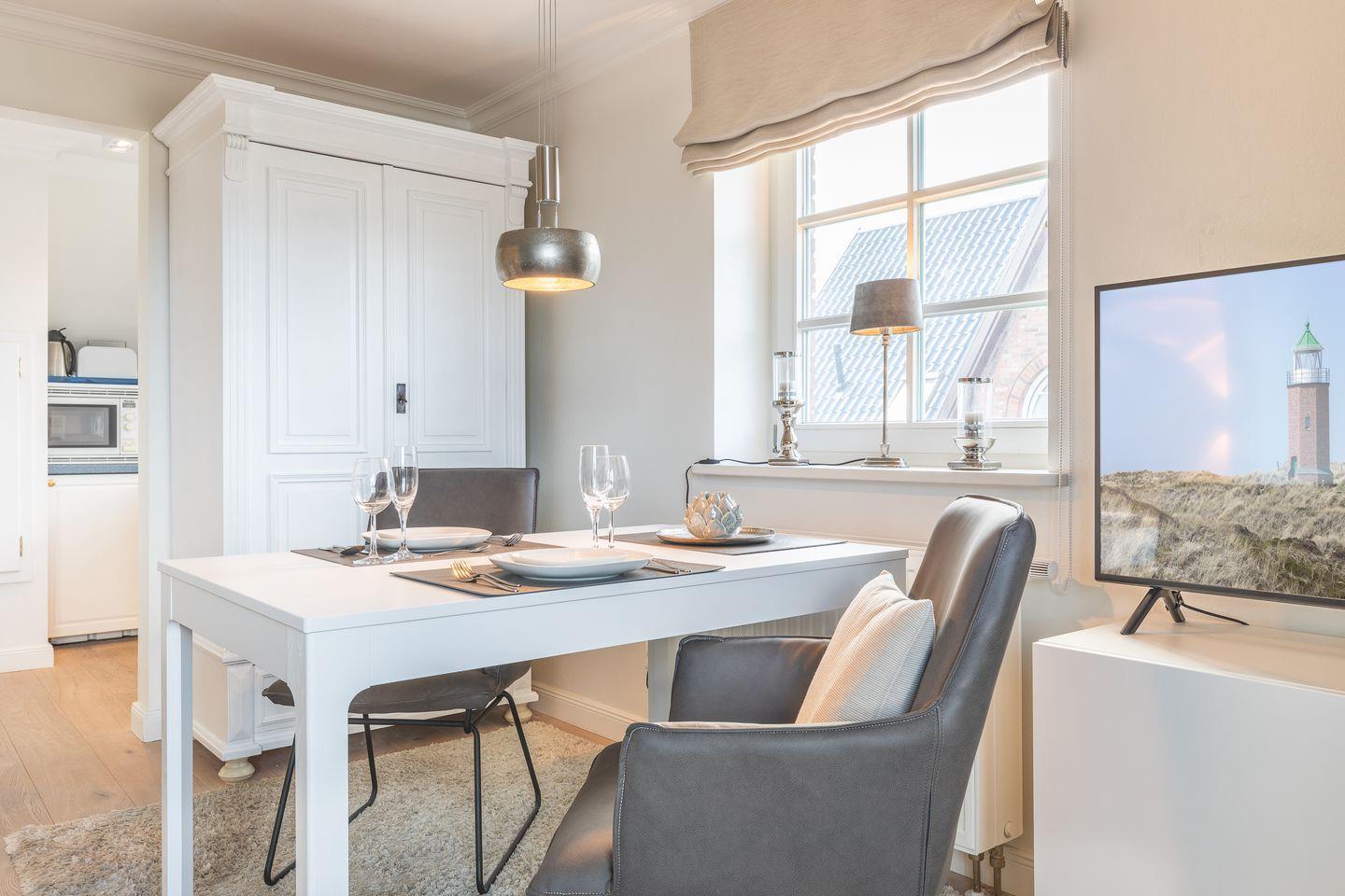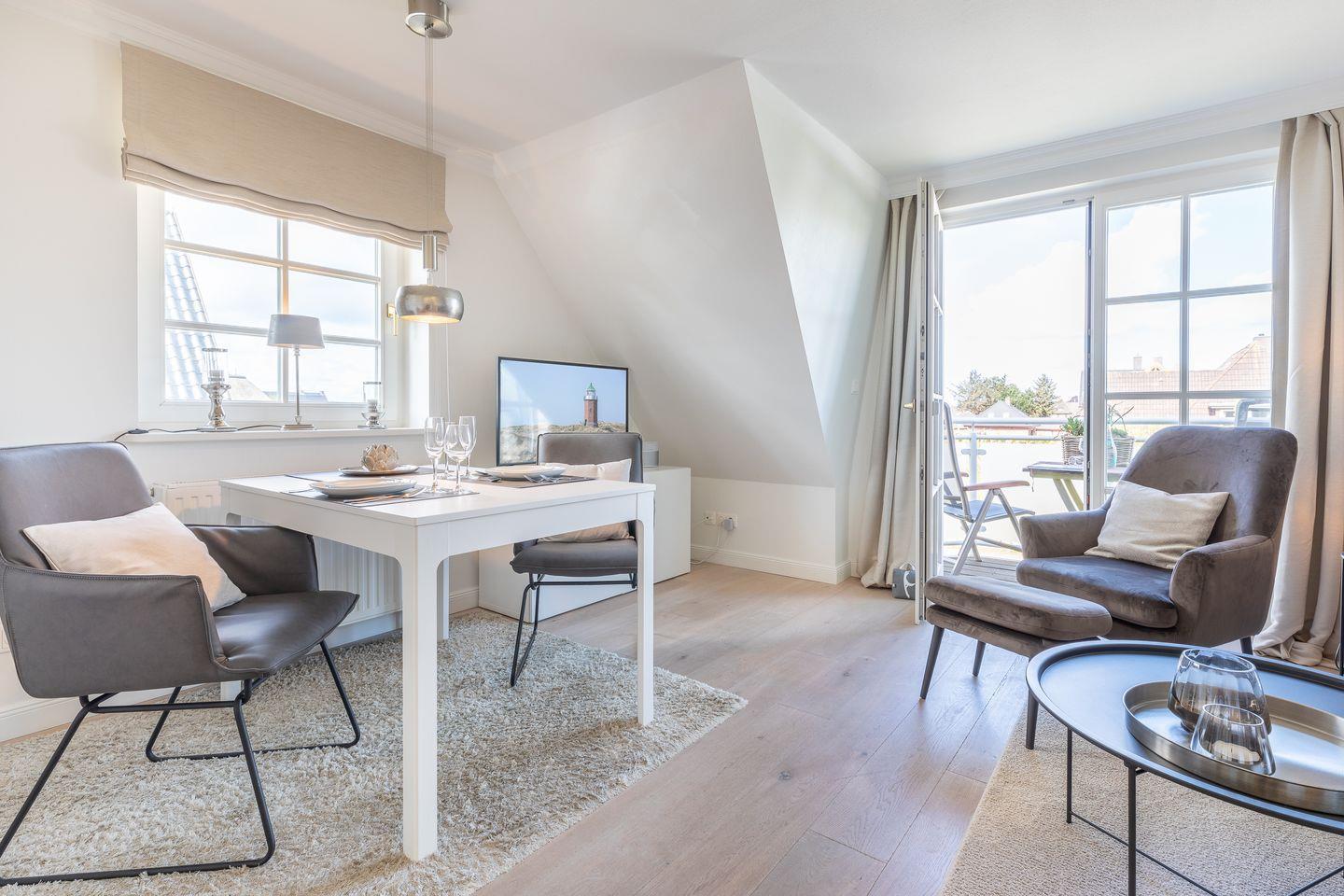 Ihr Domizil? Wunderschön! In 2021 neu gestaltet, mit sehr viel Liebe zum Detail ausgestattet. Altmosphärisch urlauben Sie sehr geschmackvoll, mit viel Platz für zwei Personen, ein Traum-Wellness-Bad inklusive. Ihre Lage? Optimal! Sie wohnen ruhig und zurückgezogen, aber dennoch sind es nur wenige Schritte zu Strand und Einkaufsgelegenheiten. Und Open Air? Auf Ihrem sonnigen Westbalkon lässt sich die frische Nordseeluft und Sylter Sonne bestens genießen.