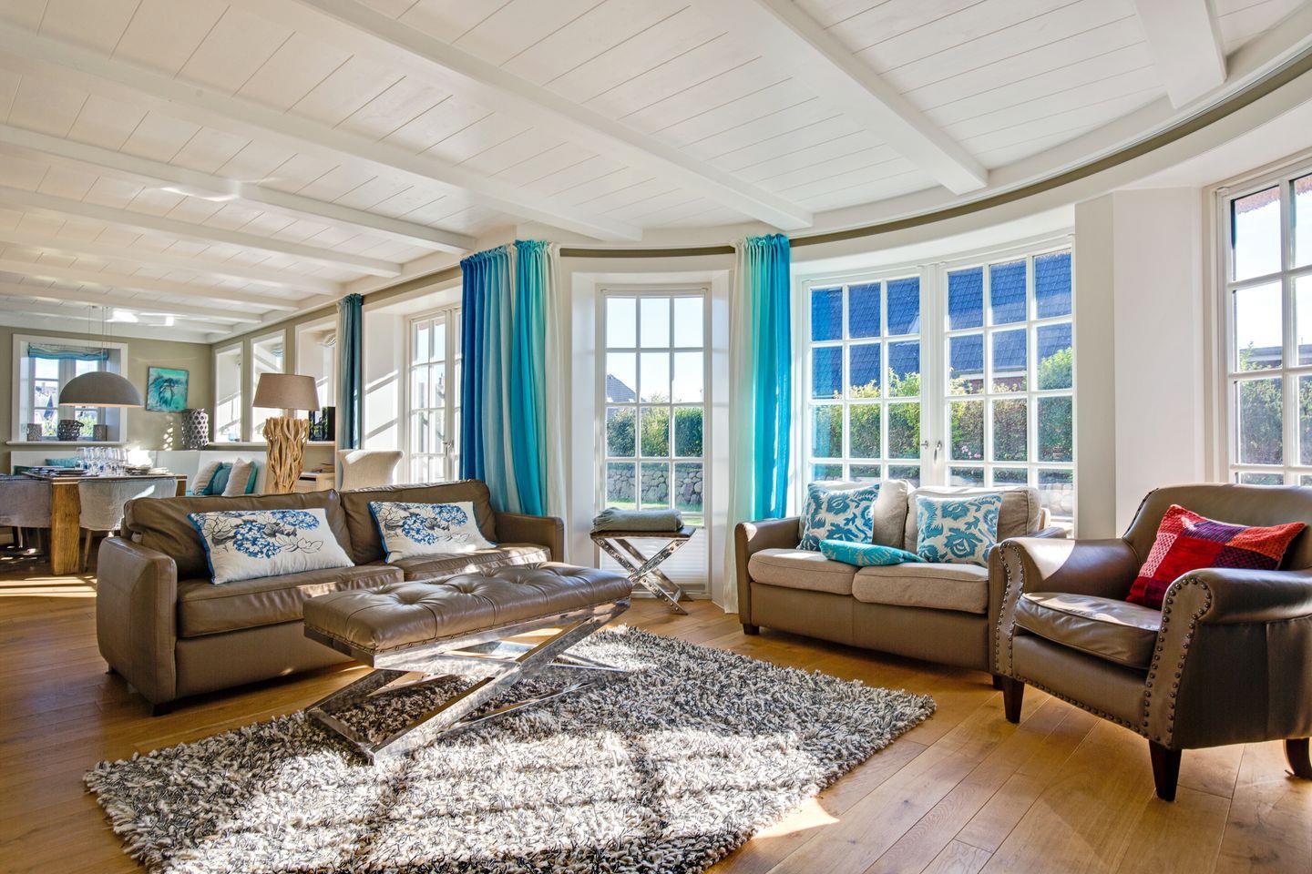 Das freistehende "Cliffhouse" bietet mit seinen üppigen 200 qm Nutzfläche bis zu acht Personen viel Raum, die Sylter Urlaubsträume genau hier zu verwirklichen. Das hübsche Friesenhaus ist ringsherum von bepflanzten Friesenwällen eingerahmt und von Rasenflächen umgeben. Ihre Open-Air Situation ist luxuriös: Mit einer Südterrasse (Wohnzimmer) sowie einer Ostterrasse , die über eine „Klöntür“ vom Küchenbereich erreichbar ist , stehen Ihnen im Cliffhouse gleich zwei große Terrassenbereiche zur Verfügung, Sylt Open Air ausgiebig zu genießen und dem nahen Meeresrauschen zu lauschen.