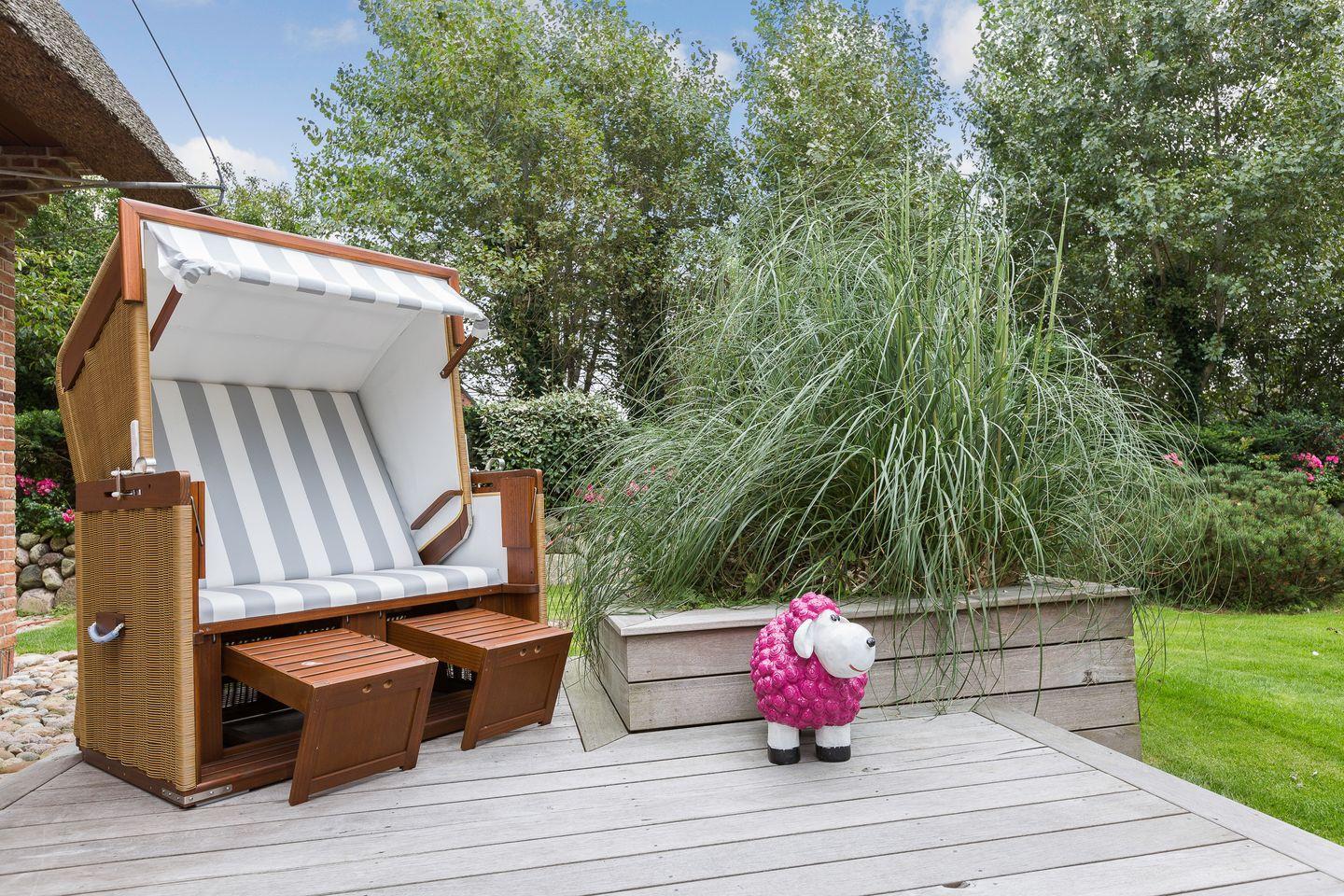 Ihr eigener Garten ist zum Süden ausgerichtet und wurde liebevoll angelegt. Ihre Terrasse gleicht eher einer Terrassenlandschaft mit Strandkorb und wertigem Gartenmobiliar (ca. von April-Oktober).