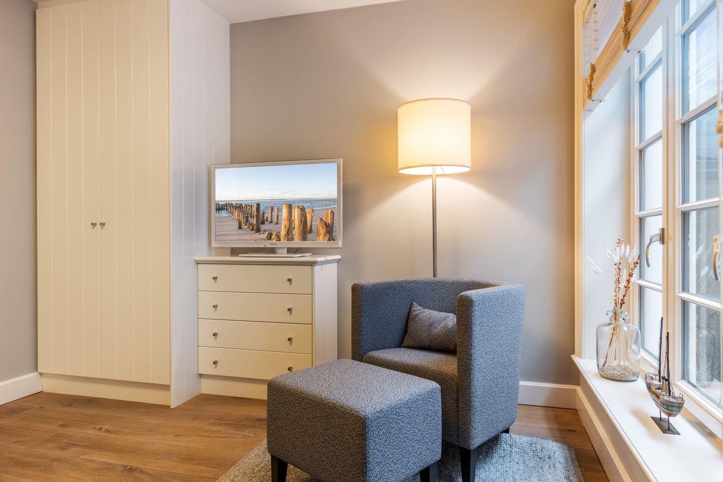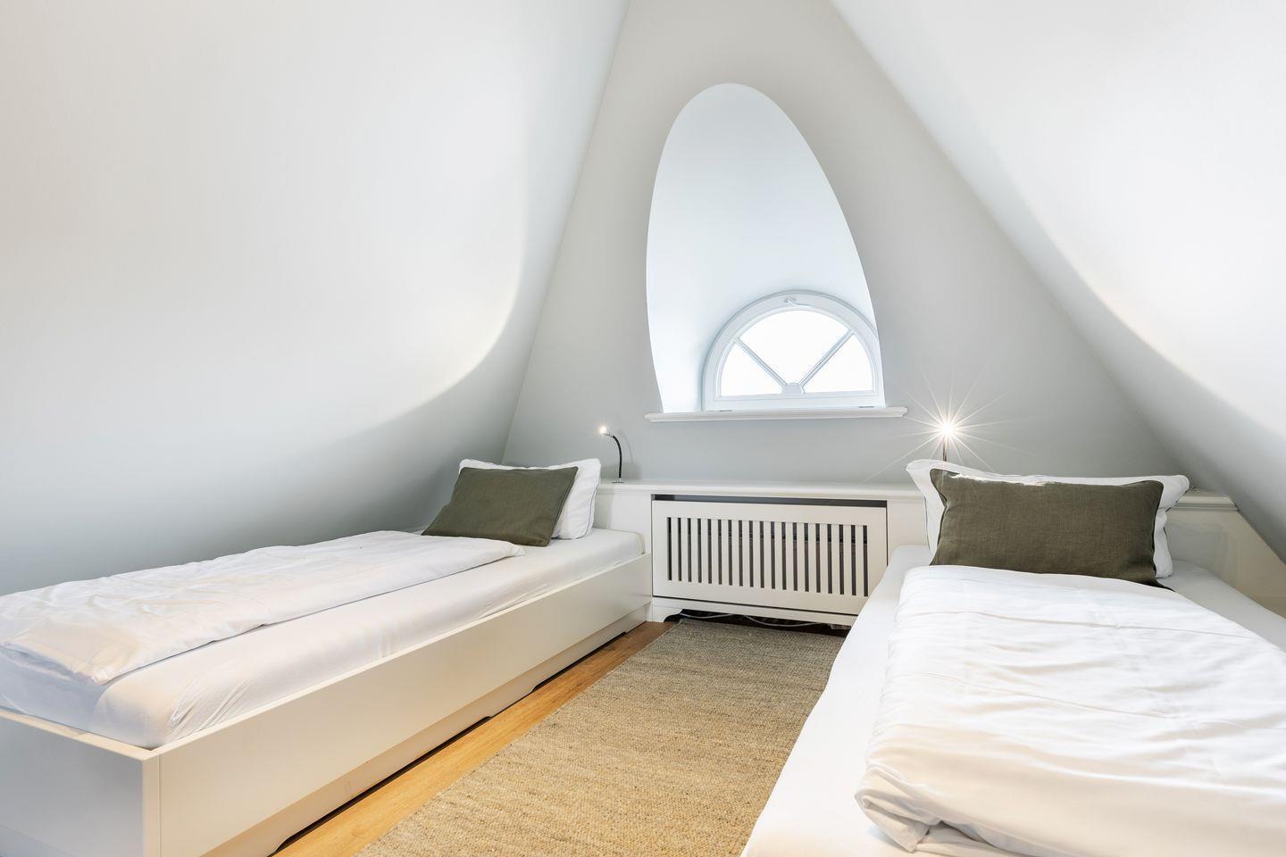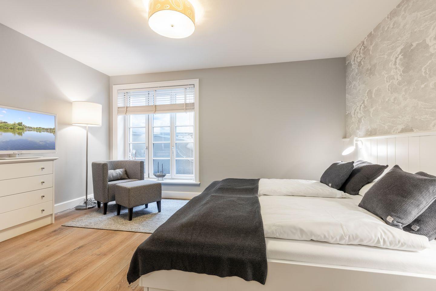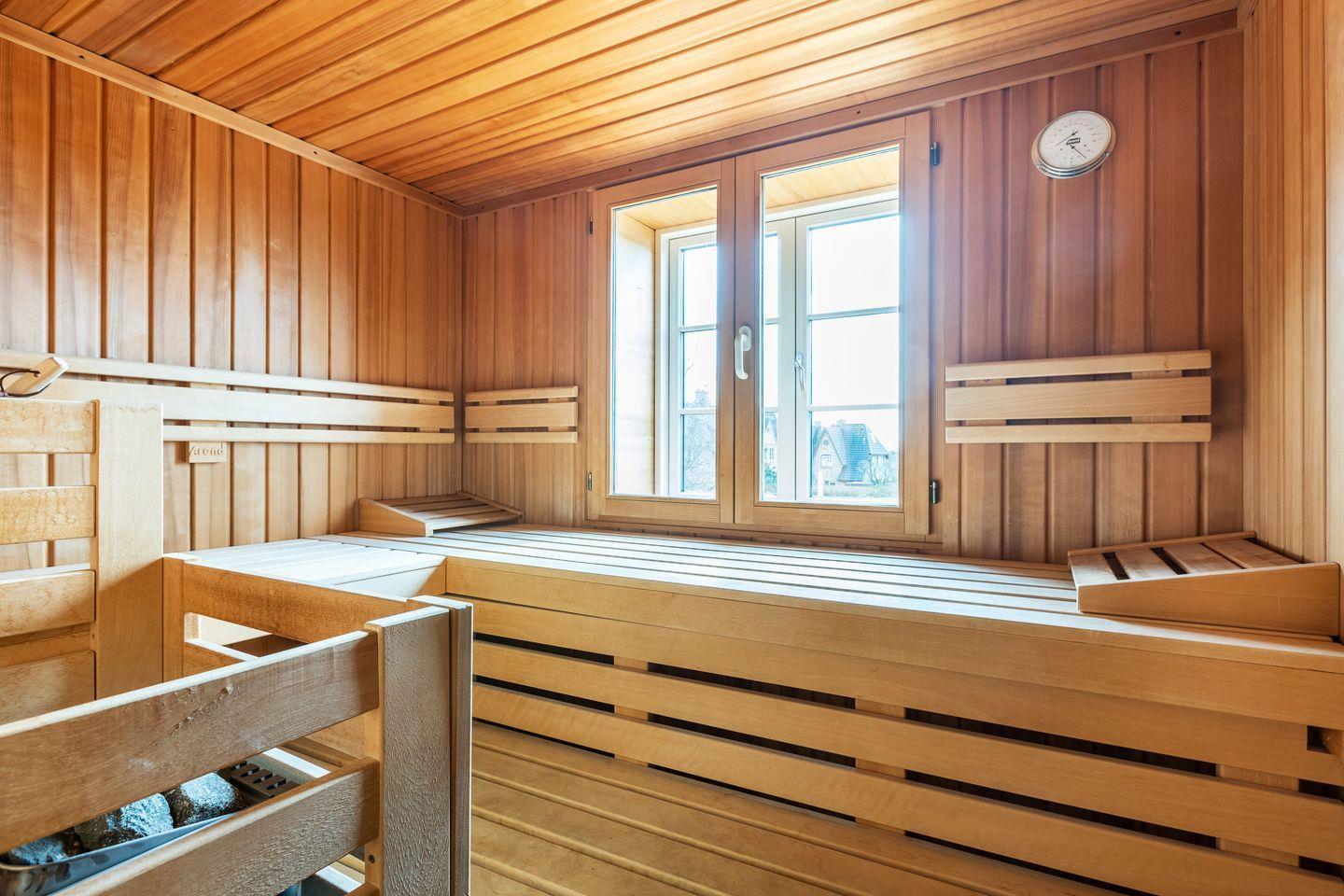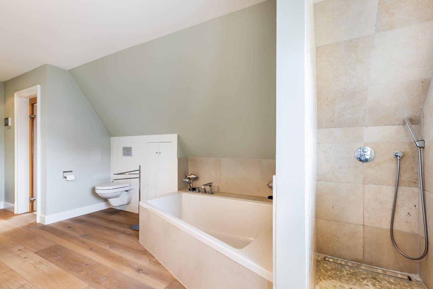 Alleine das Obergeschoss zu erleben ist den Besuch dieses besonderen Ferienlogis wert: Ein Masterbedroom, der den Namen auch wirklich verdient, dazu ein separater Bereich mit begehbarem Kleiderschrank sowie ein ganz besonders schönes Bad mit eigener Sauna verwöhnen Sie.