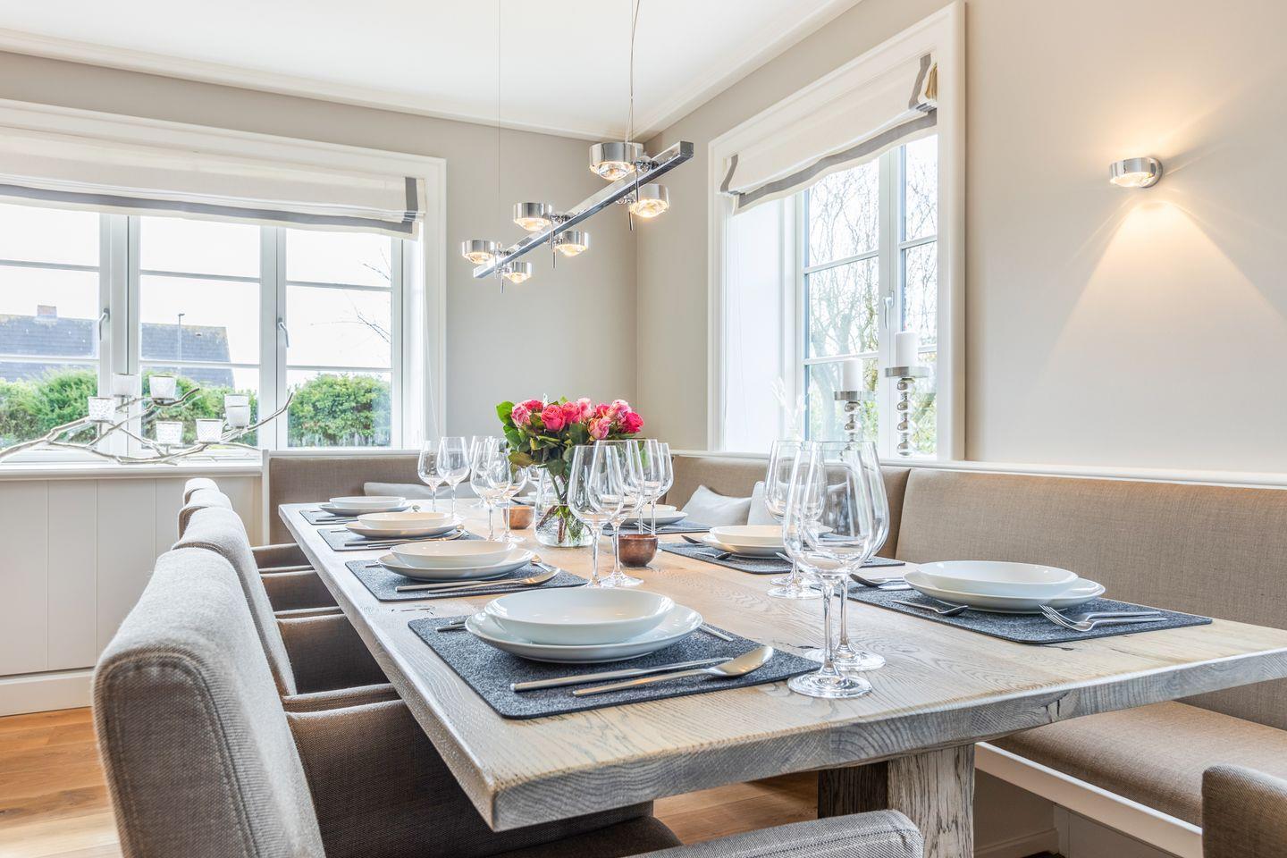In zentraler Lage, zwischen Wenningstedt und Braderup in Wiesen- und Golfplatznähe gelegenes, luxuriöses Hausteil. Üppige ca. 222 qm Wohnfläche im Erd-, Unter-, Ober- und Dachgeschoss empfangen und verwöhnen bis zu 8 Personen.