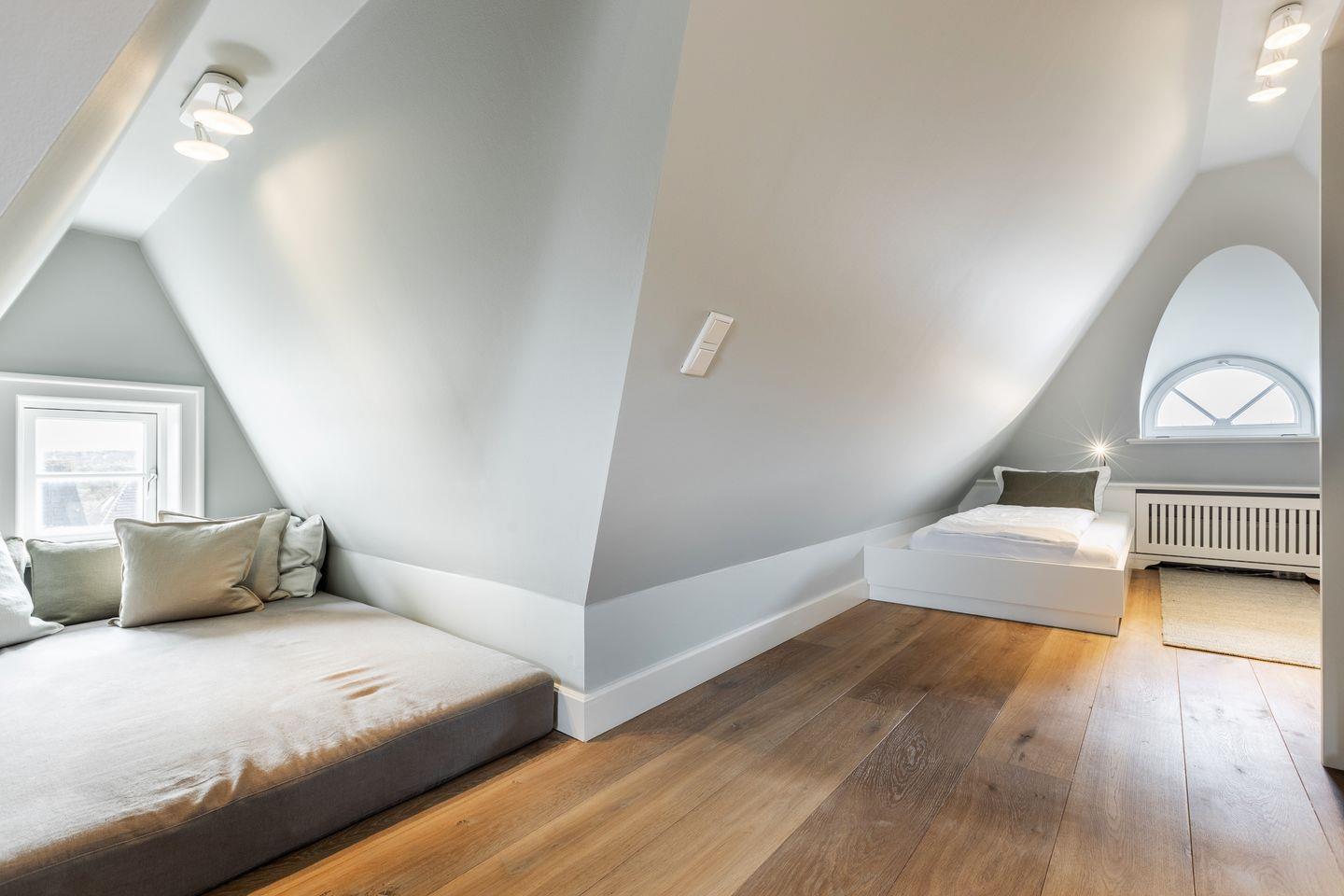 DG: Im offen gestalteten Dachgeschossbereich mit zwei Einzelbetten fühlen sich Ihre Kids bestimmt pudelwohl - eine "Räuberhöhe par excellence" findet sich im mit Matratzen-„Lümmelecke“ im separaten Spitzboden. Im OG findet sich ein separates Duschbad mit WC eigens für das DG.