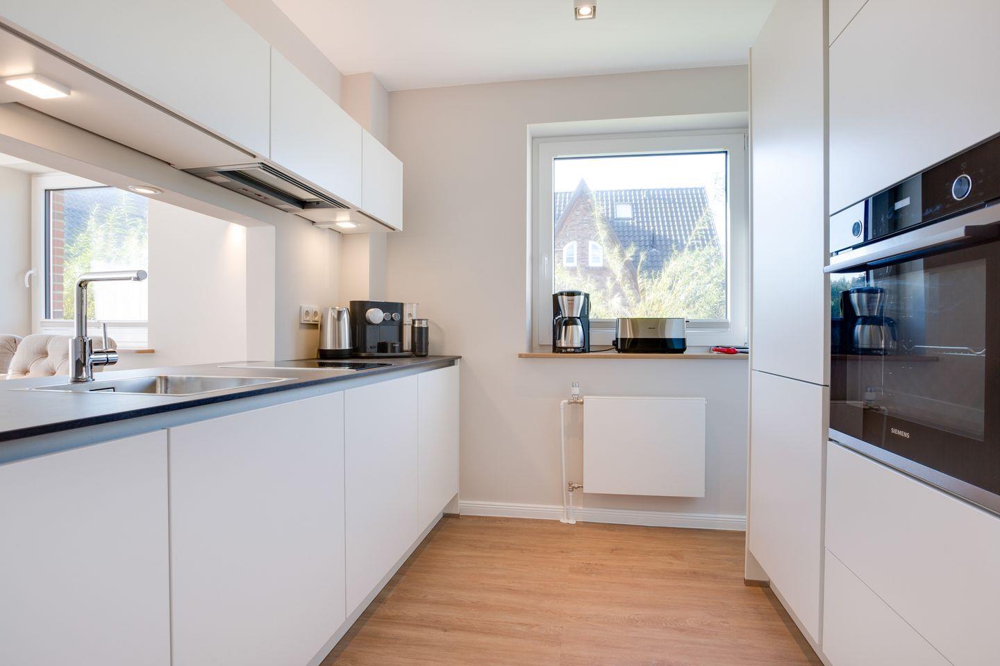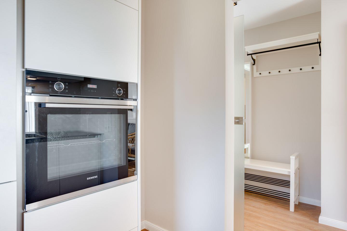 In der separaten Küche finden Sie alles, was das Herz eines Hobby-Kochs höher schlagen lässt. Viel Platz für Vorbereitungen, ein moderner Backofen, Geschirrspülmaschine und eine Nespresso-Maschine sorgen dafür, dass Sie hier sowohl ein leckeres Frühstück als auch Abendessen problemlos zubereiten können. Im Erdgeschoss der Wohnung befindet sich außerdem ein Gäste-WC.