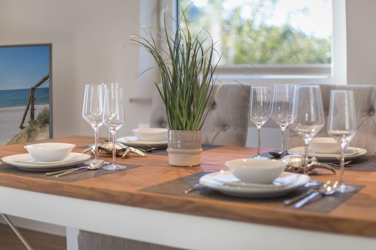 Dieses Sylter Feriendomizil erstreckt sich über mehrere Etagen und eignet sich durch seine Aufteilung ideal für Ihren geplanten Familienurlaub auf unserer schönen Nordseeinsel. Im Wohnzimmer finden Sie eine Sofalandschaft mit Flatscreen-TV und einen großen Essbereich. Von hier aus erreichen Sie auch die möblierte Terrasse mit angeschlossenem kleinen Gartenteil.