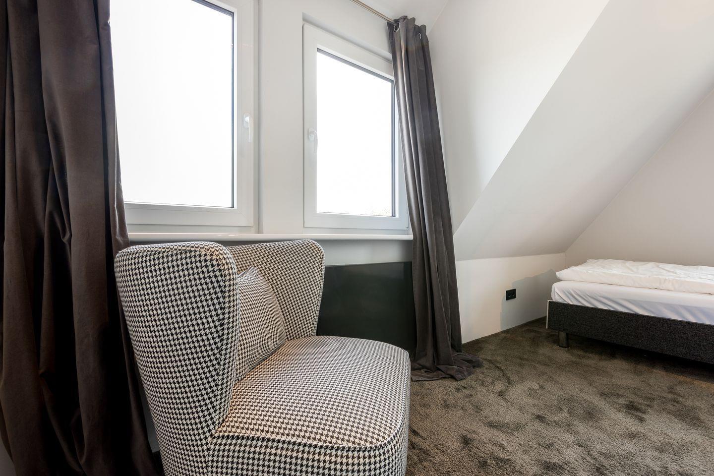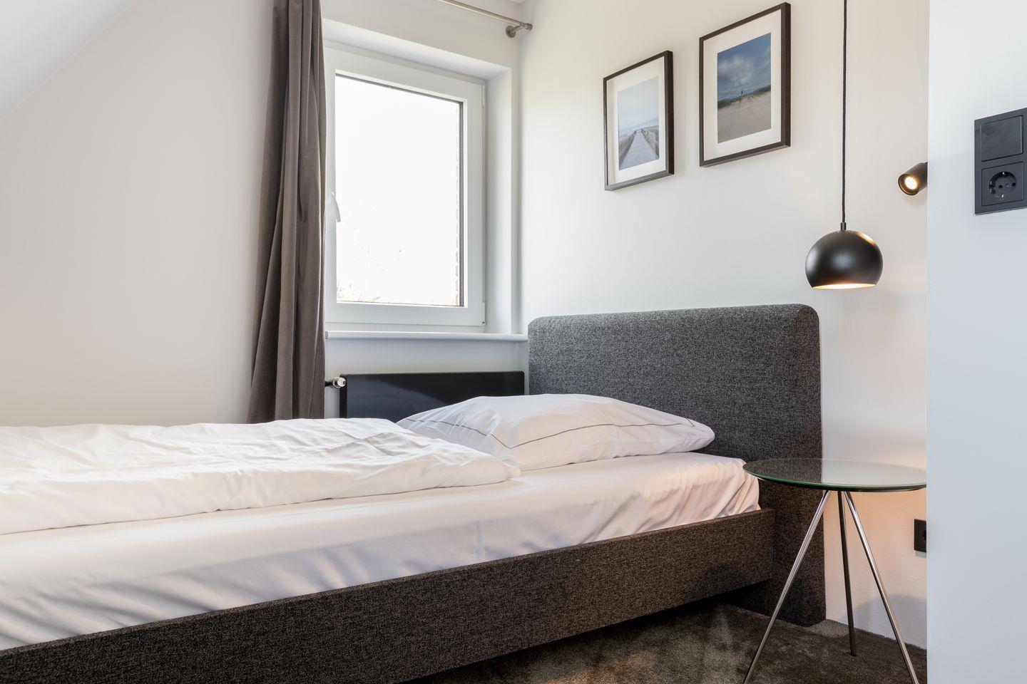 Masterbedroom mit Doppelbett (180x200cm) und TV. Sehr schönes Design-Bad mit Dusche und WC. Ein kleinerer Raum mit Schlafsessel (90x200cm).