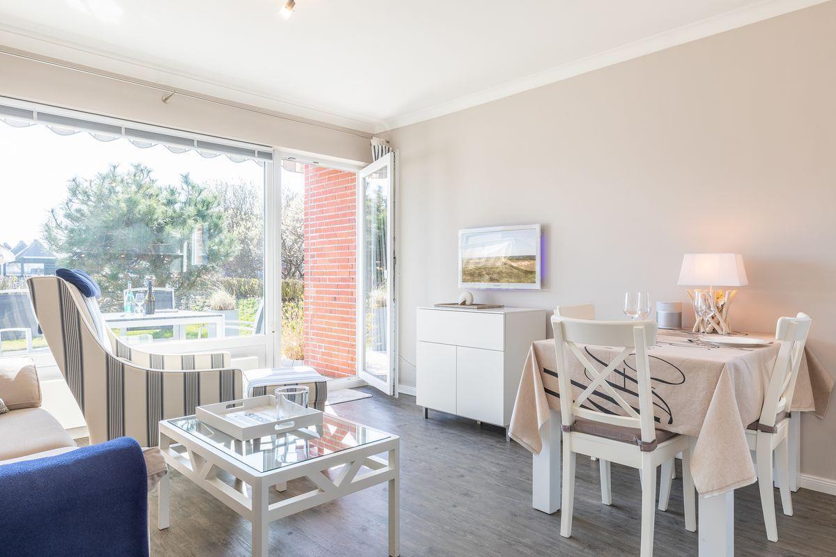 In diesem gemütlichen Appartement werden Sie sich in Ihrem Urlaub zu zweit sofort wohlfühlen. In ruhiger Lage in Wenningstedt können Sie es sich hier richtig gut gehen lassen. Der helle Wohnraum mit bodentiefen Fenstern empfängt Sie mit einer einladenden Couchecke mit Flatscreen-TV sowie einer Essgelegenheit mit Platz für bis zu drei Personen.