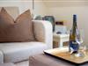 OG: Wohnraum mit kleiner Couch, Flatscreen-TV, W-LAN Anschluss, Telefon und Radio, Essbereich für zwei Personen, Pantry-Küche mit zwei Kochfeldern, Wasserkocher, Filterkaffeemaschine, Nespresso-Maschine, Mikrowelle und Toaster (in diesem Domizil gibt es keine Geschirrspülmaschine), Badezimmer mit Dusche und WC