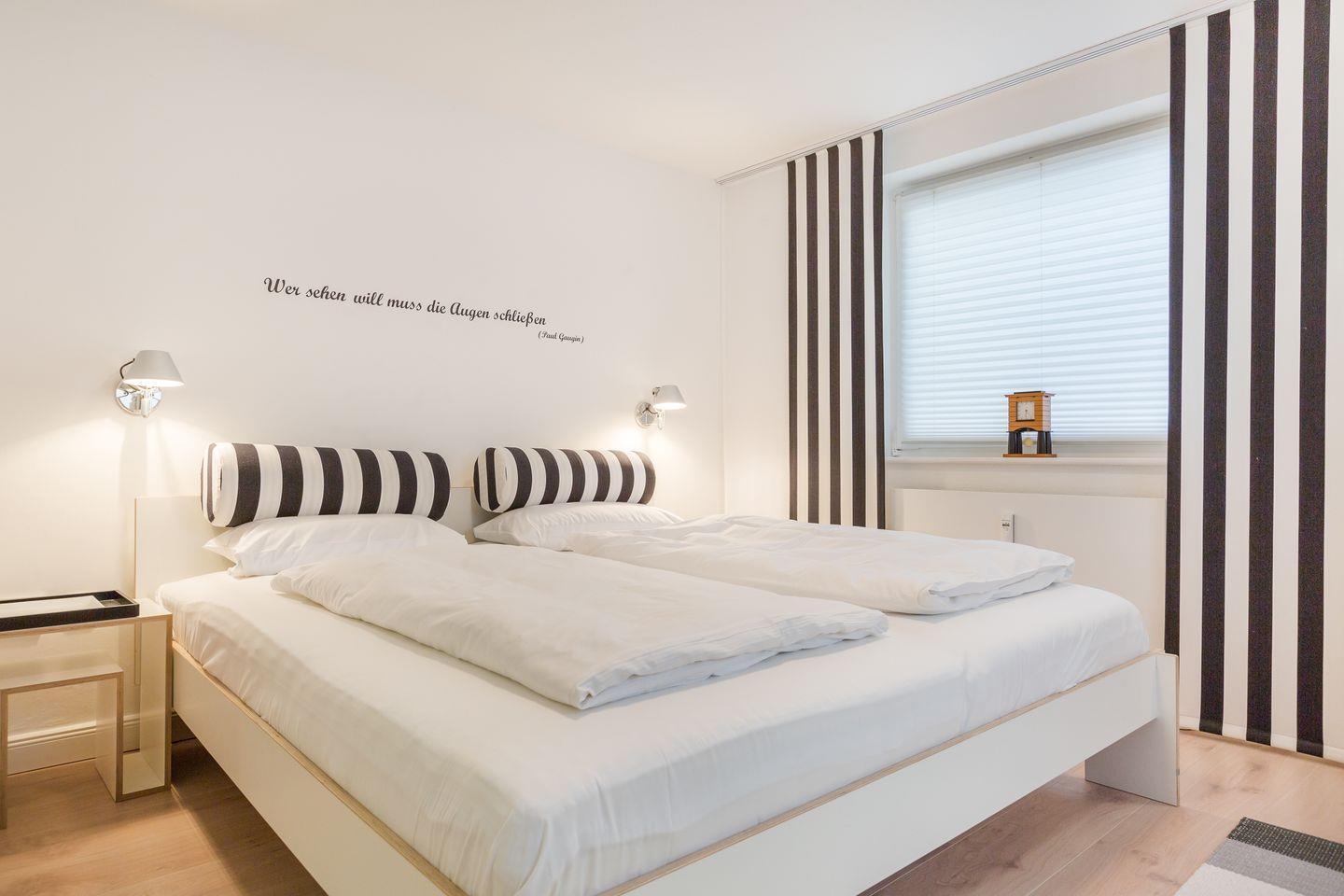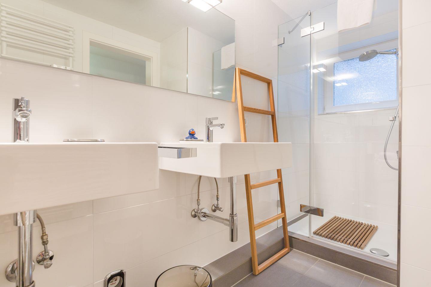 Das Wohnzimmer bietet Ihnen eine gemütliche Couchecke, einen Flatscreen-TV (kostenlose Sky- und Netflix-Nutzung) und einen kleinen, schicken Essbereich. Die offene Küche ist voll ausgestattet, sodass Ihren Urlaubs-Kochkünsten nichts mehr im Wege stehen sollte. Im Erdgeschoss steht Ihnen außerdem ein Gäste-WC zur Verfügung.