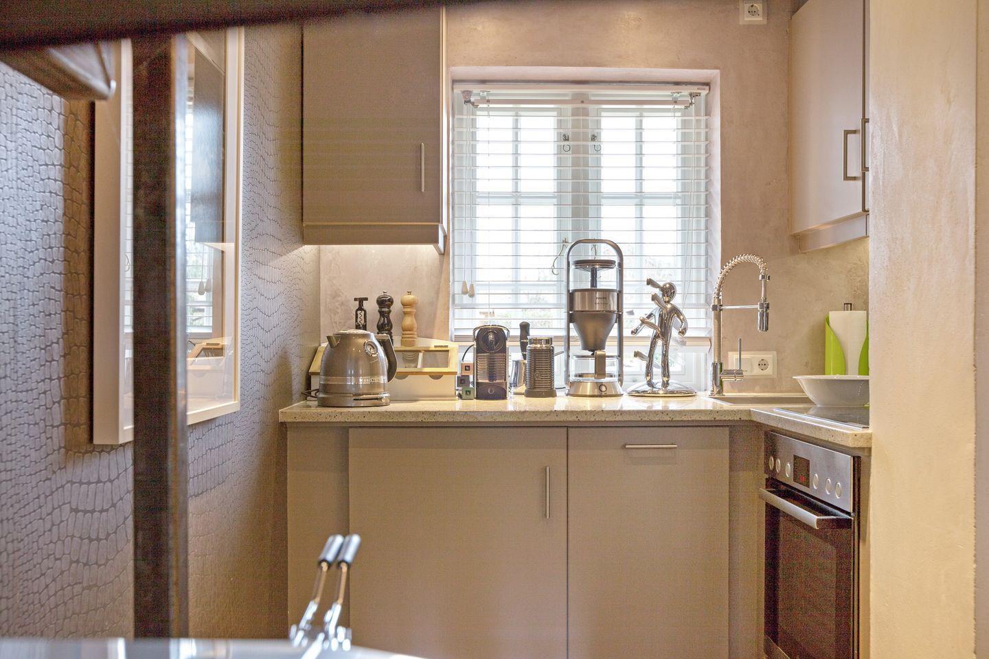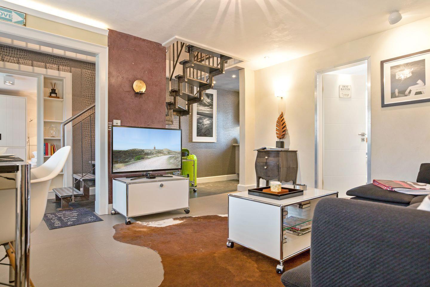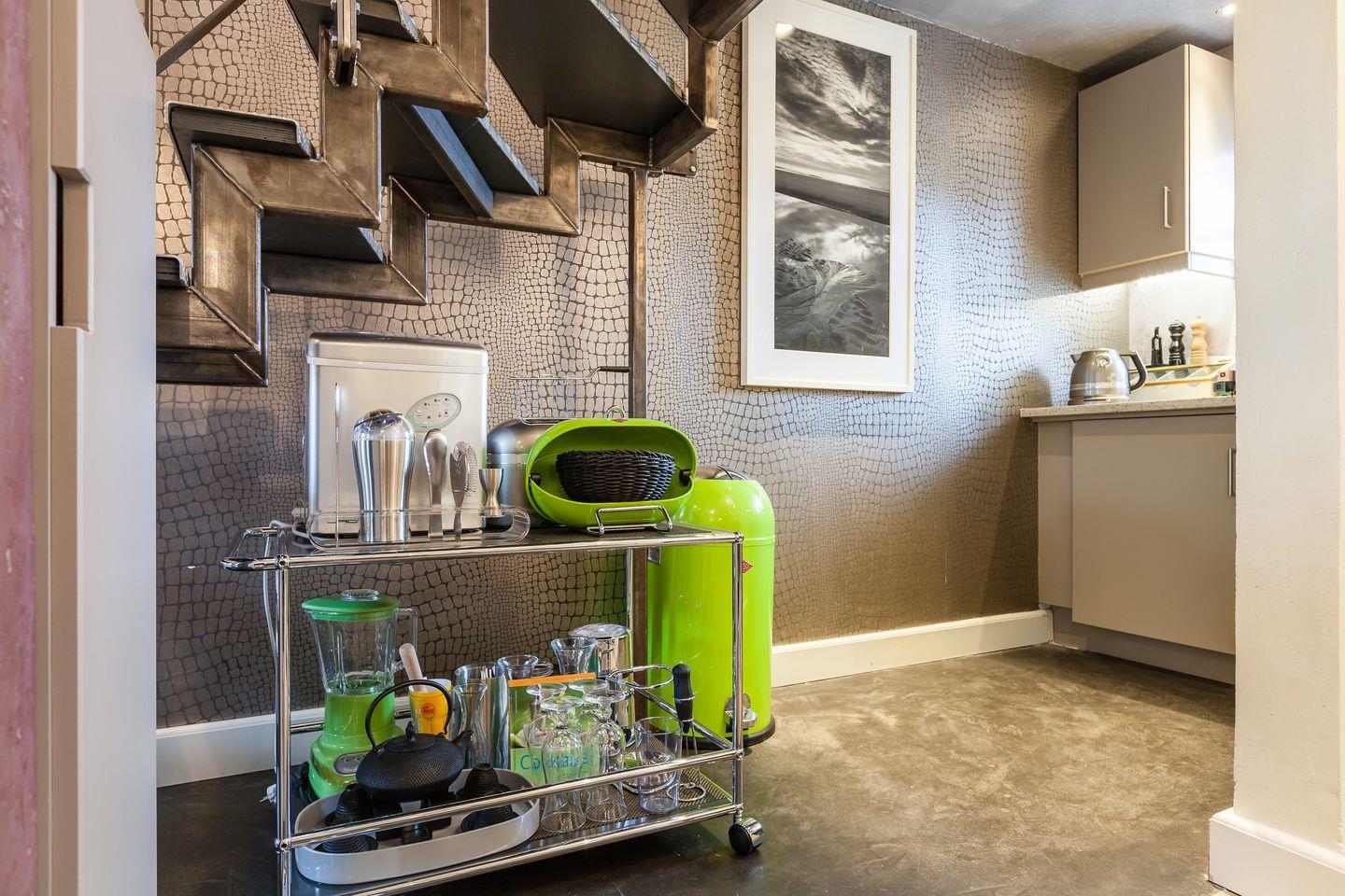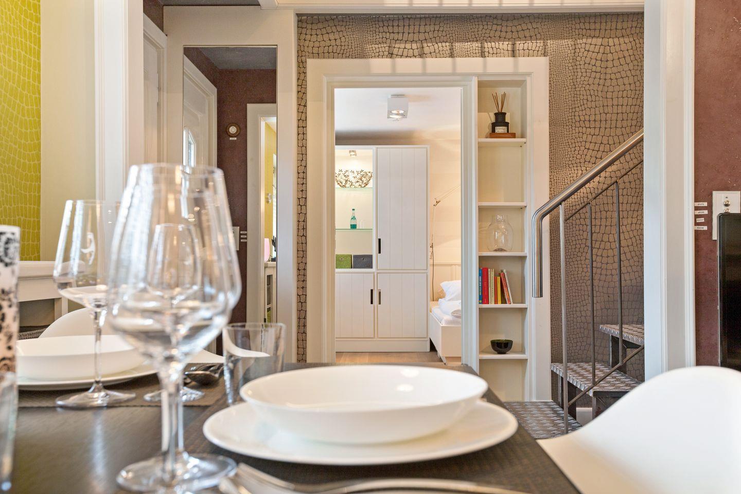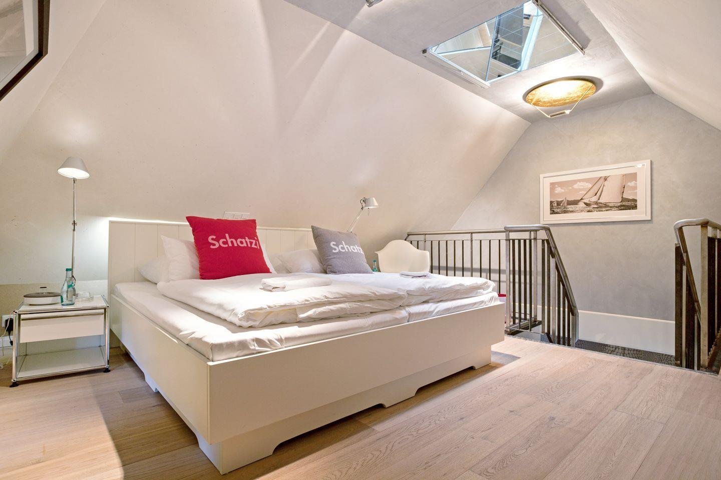 EG: offener Wohnraum mit gemütlicher Couch, Flatscreen-3D-TV und USM und VITRA/Eames Mobiliar, W-LAN, Blu-Ray Player, portables BOSE Sounddock, Essbereich für drei Personen, räumlich abgetrennte Küche mit Backofen, Induktionsherd, Wasserkocher, Filterkaffeemaschine, Geschirrspülmaschine, Toaster und Espressomaschine, Schlafzimmer mit Einzelbett (90x200cm) und Tischler-Einbaumobiliar, Tageslicht-Badezimmer mit Dusche und WC