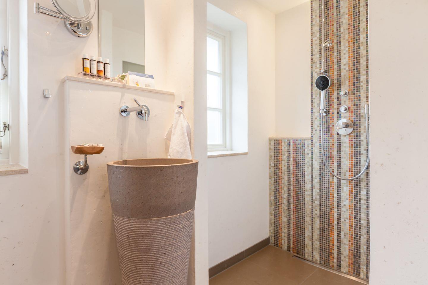 Alle, die Mainstream mögen, dürfen sich unmittelbar mit einem anderen Domizil vertraut machen. Die Gäste, die das ganz Besondere und Außergewöhnliche suchen, finden hiermit sicherlich das richtige Ferienappartement. Sie bewohnen eines der ältesten Friesenhäuser der Insel, anno 1695, kuschelig unter Reet. Die Wände sind krumm und schief und die alten Dachbohlen wurden wieder sicht- und erlebbar gemacht. Im Inneren erwartet Sie das komplette Kontrastprogramm: alles wurde bis in's kleinste Detail für Sie liebevoll und äußerst stylish neu gestaltet. Ehe wir weiter von den inneren Werten schwärmen, wollen wir Ihnen die geniale Lage nicht länger vorenthalten: es sind nur wenige Schritte zu Strand und Meer, genau so, wie Sie den lauschigen Dorfteich um die Ecke finden. Auch Frühstücksbrötchen, feine Restaurants und Feinkost Meyer sind nur einen Steinwurf entfernt. Das Lage-Ideal, "ruhig, aber dennoch mitten im Herzen Wenningstedts", ist mit Ihrem Studio 95 gefunden.