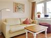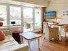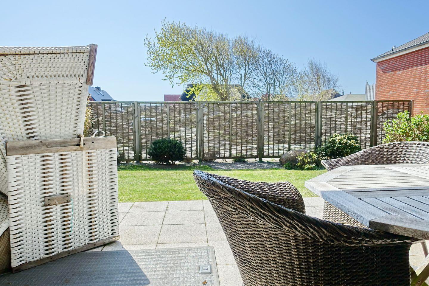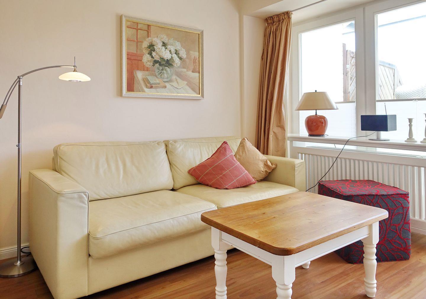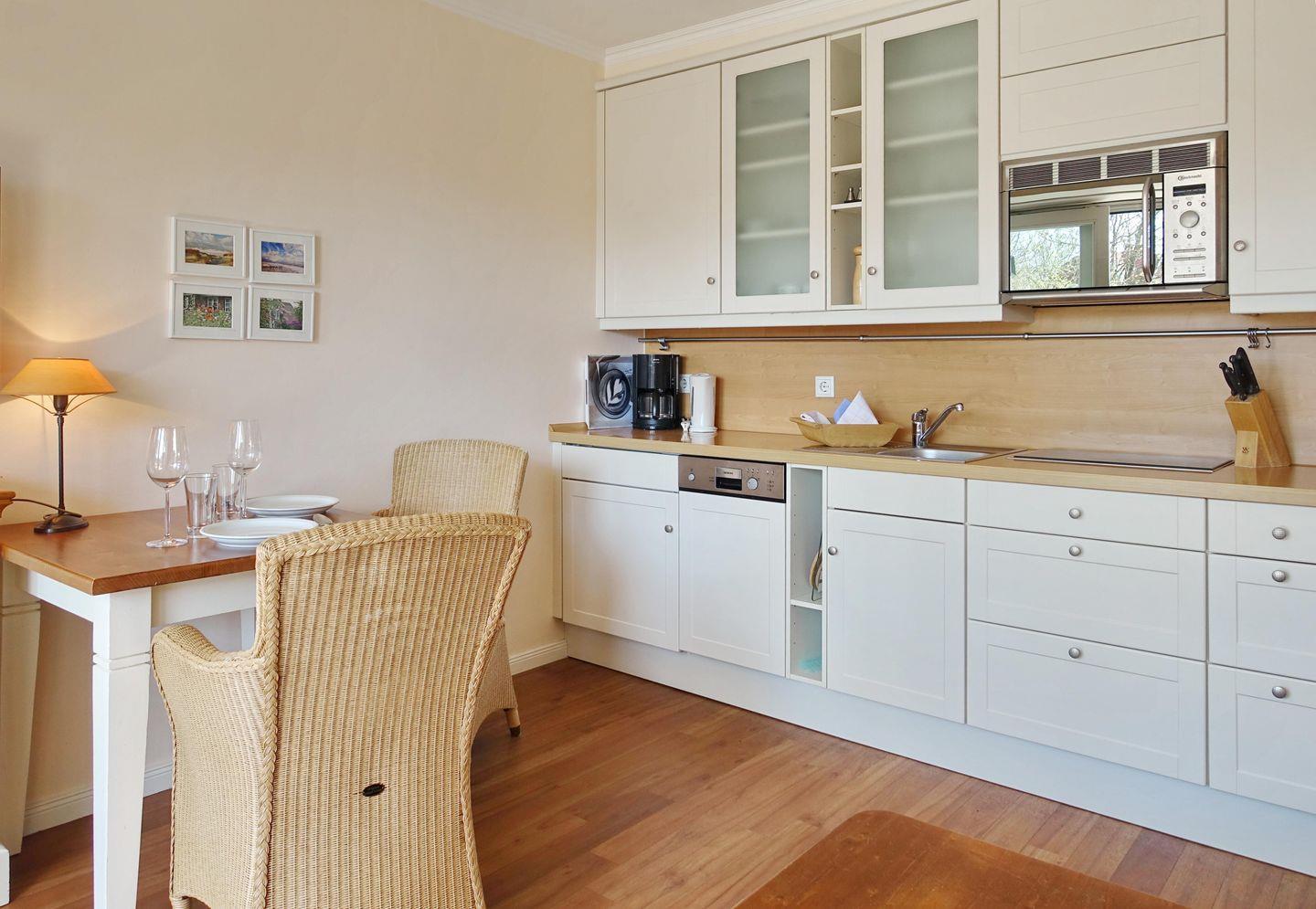 EG: Wohnraum mit TV, W-Lan, Essbereich, Küchenzeile mit Geschirrspüler, Microwelle, kleines Kochfeld, Terrasse mit Gartenmöbeln und Strandkorb (April-Oktober). Gäste-WC