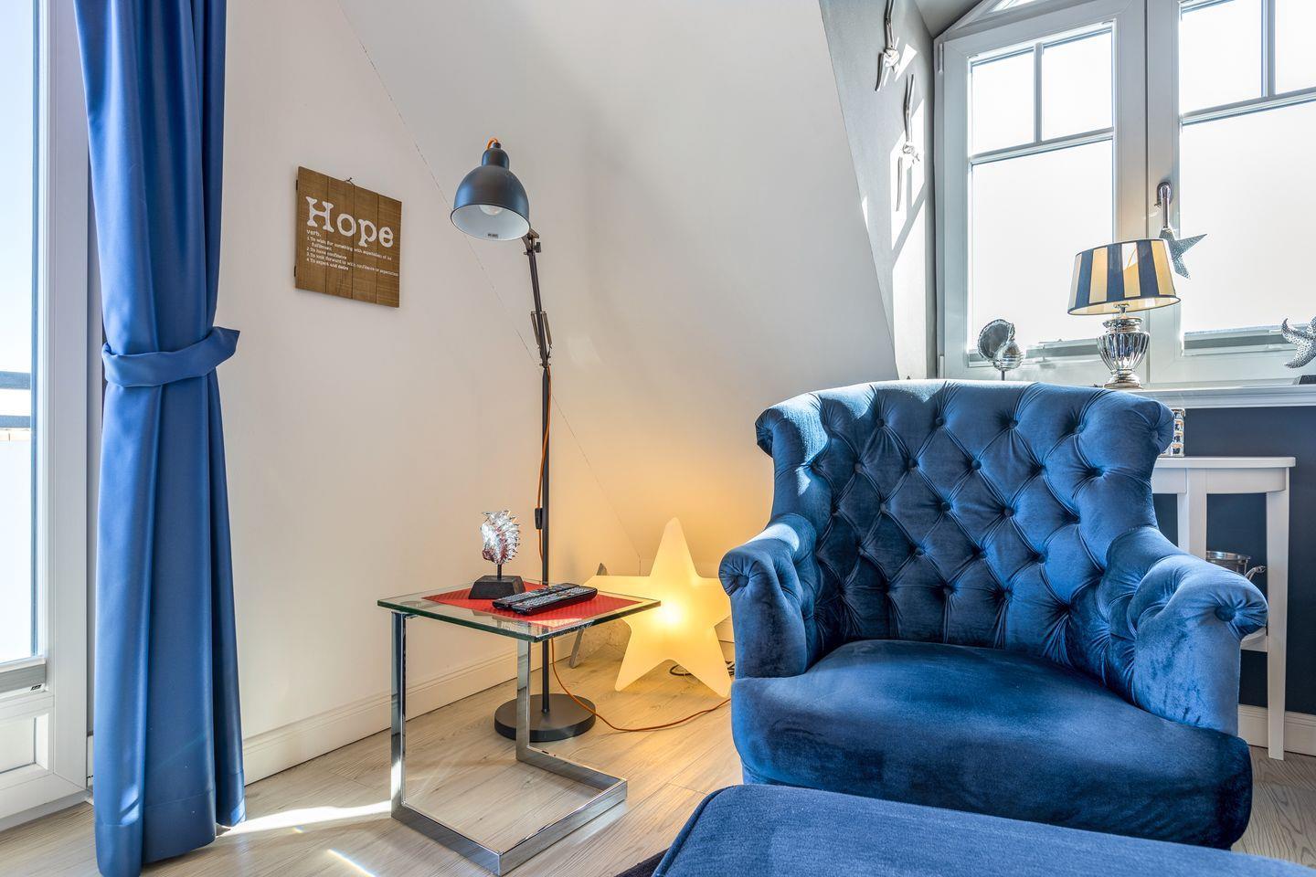Mit seiner süd-ost Ausrichtung erstrahlt das Appartement im warmen Sylter-Sonnenlicht. Wenn die Sonne einmal nicht scheinen sollte, überzeugt das ausgeklügelte Lichtkonzept in der Lounge. Internet, Radio mit Dockingstation, Bluray-Player und TV sorgen für Ihre Information und Unterhaltung. Auch eine kleine Bibliothek mit Bildbänden und Informationen über Sylt und Wenningstedt steht für Sie bereit. Nach einer ausgiebigen Strandwanderung relaxen Sie im samtigen Loungesessel oder in der individuell angefertigten Bettcouch.