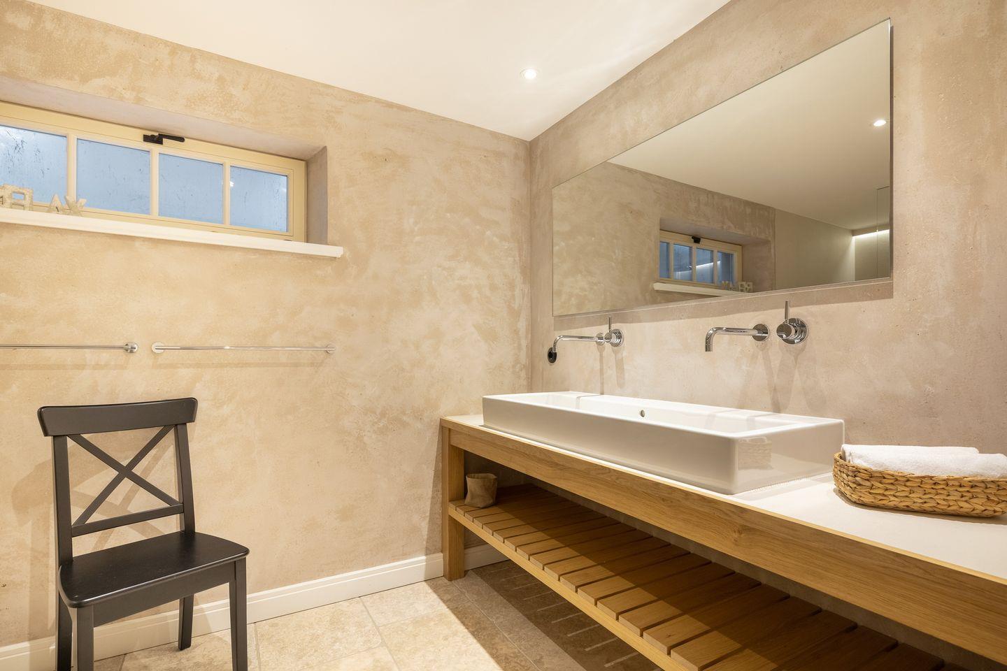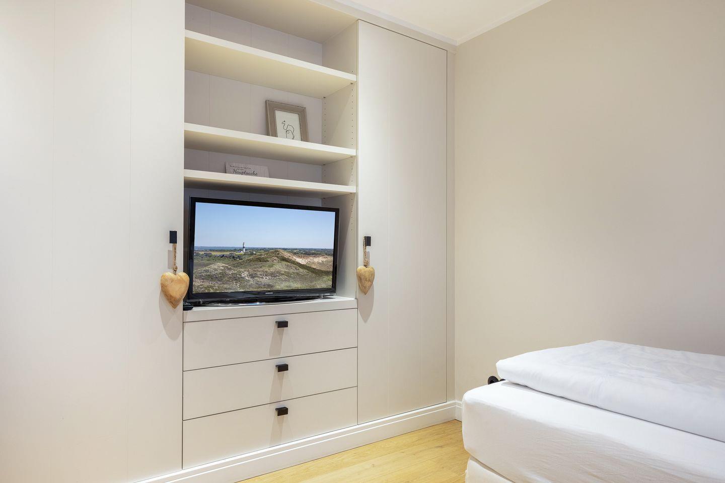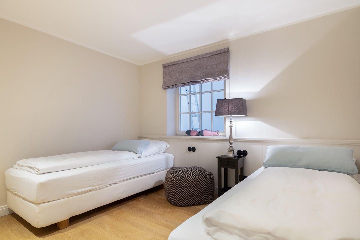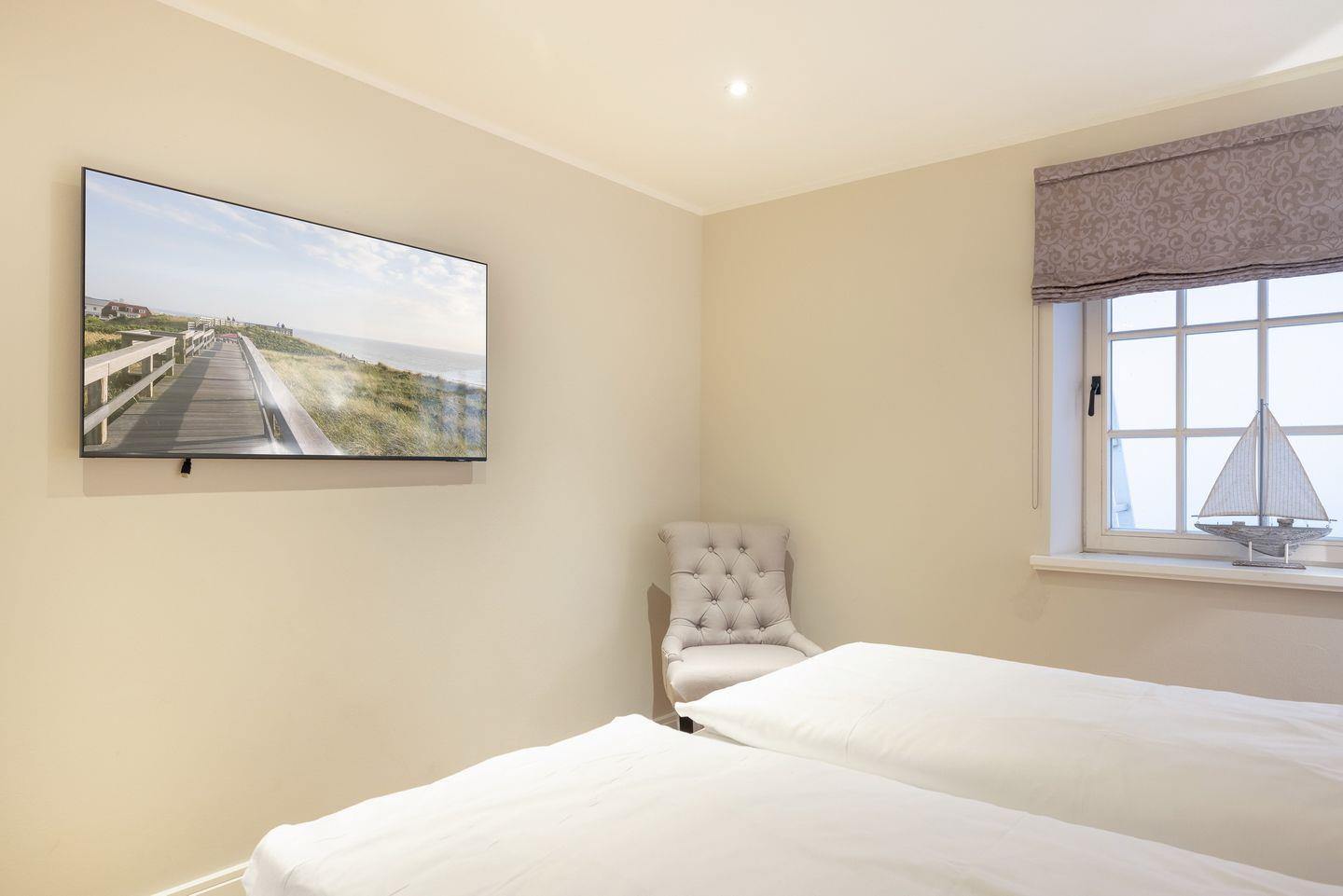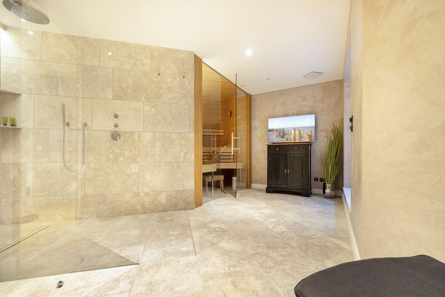 UG: Wellness-Bad mit Saunarium, großer Regendusche und Ruheliegen/Ruheraum, TV. Ein weiterer Raum mit zwei Einzelbetten (80x200cm) und SmartTV und einem Raum mit Boxspringbett (180x200cm- Matratze getrennt) und SmartTV. Waschmaschine und Wäschetrockner.