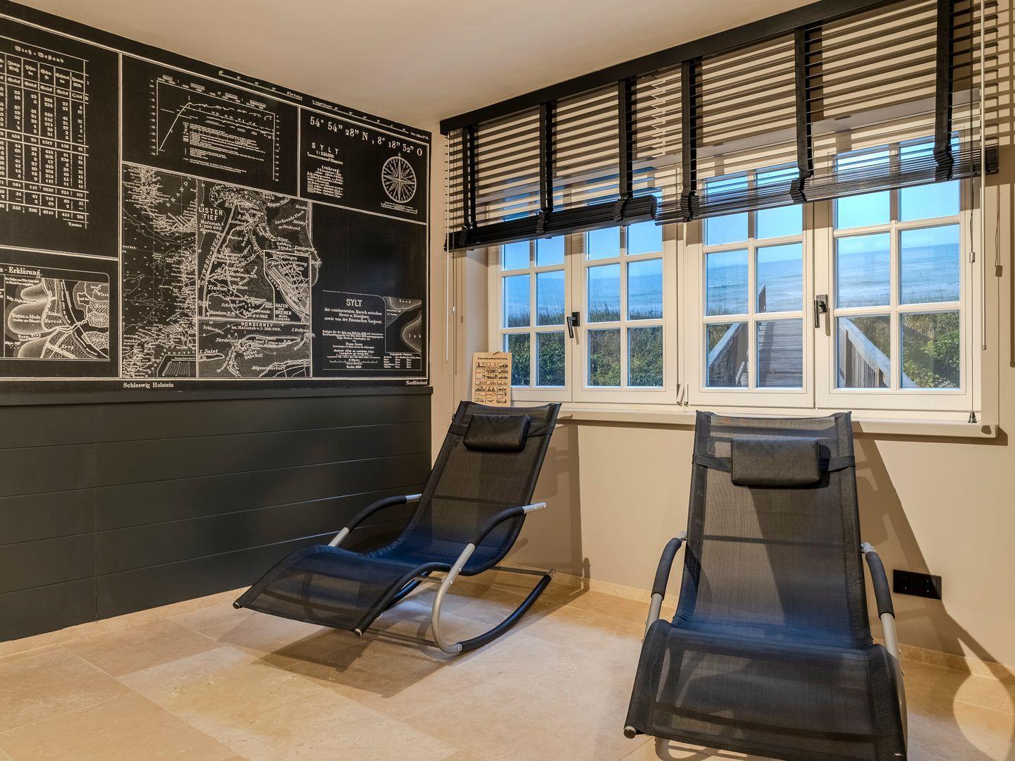 Großzügige Sauna mit schönem Ruhebereich und zwei Liegemöglichkeiten.