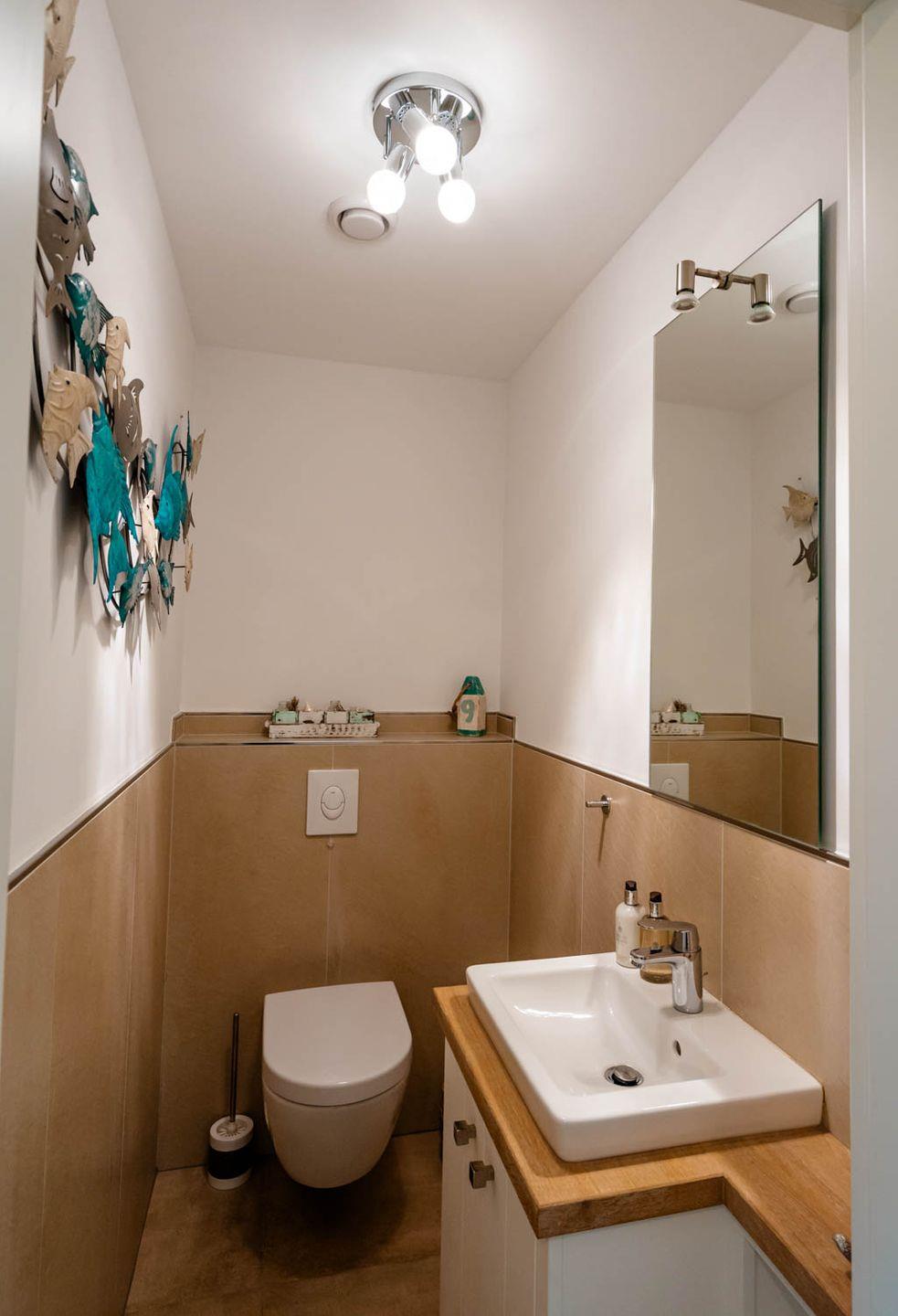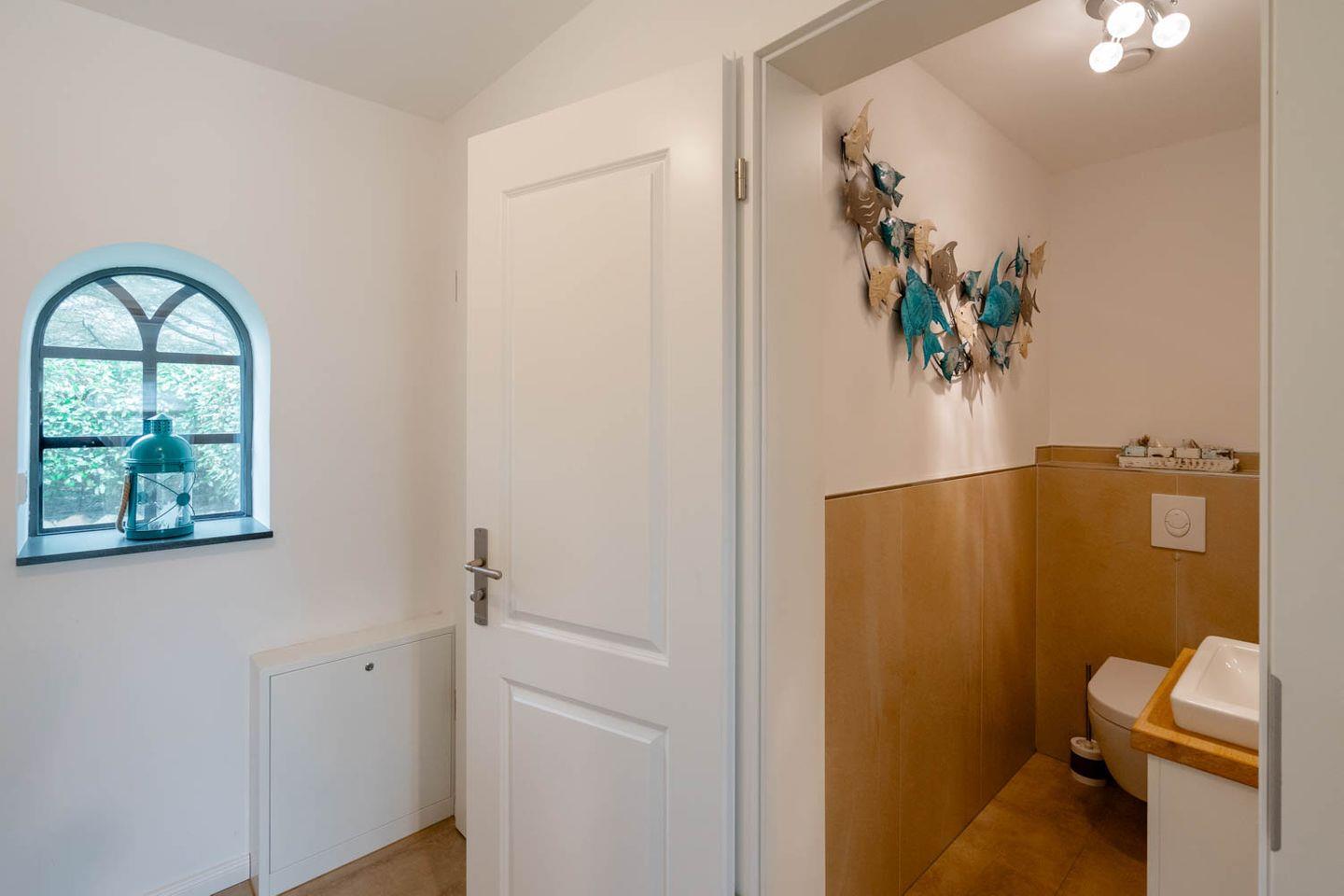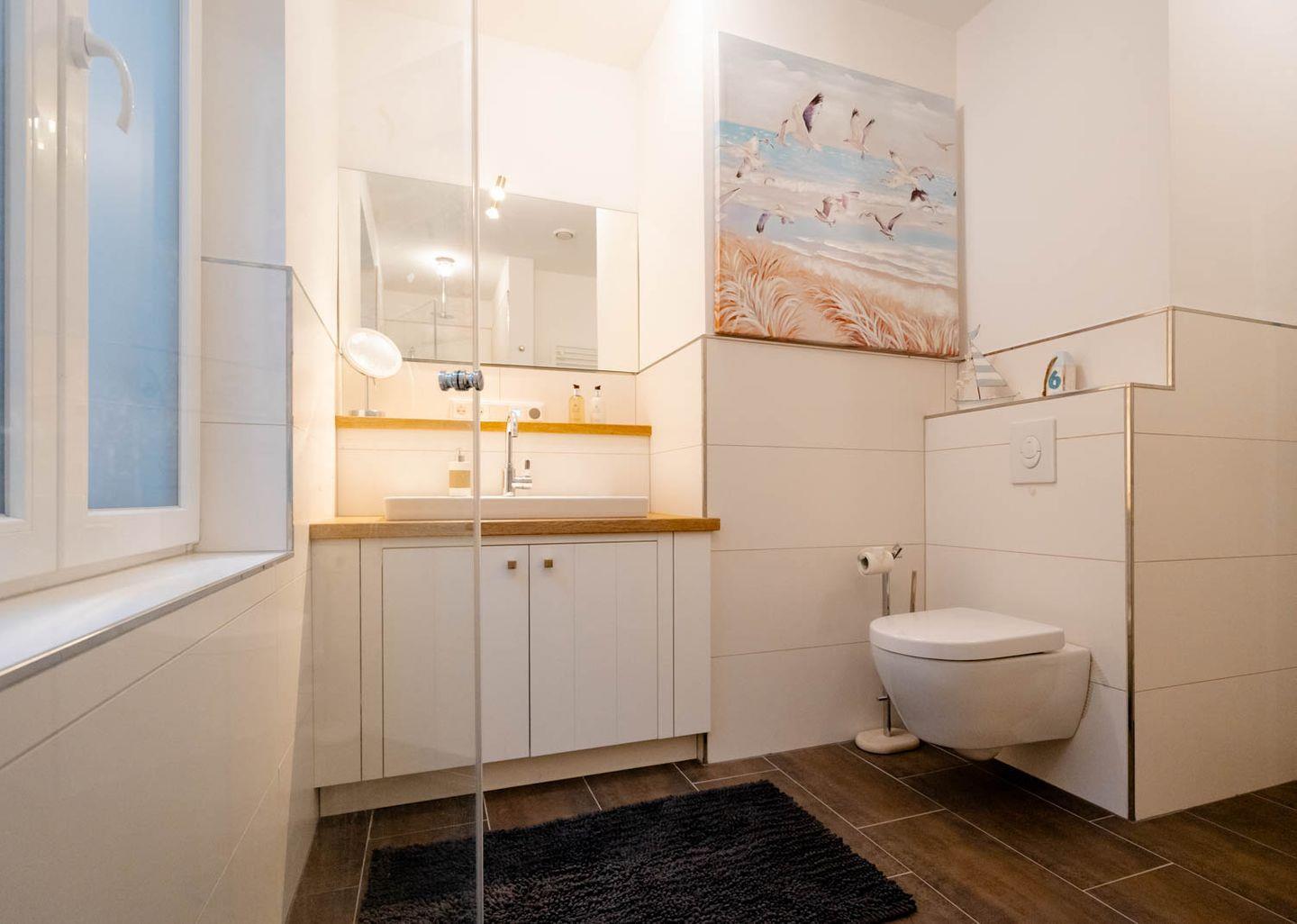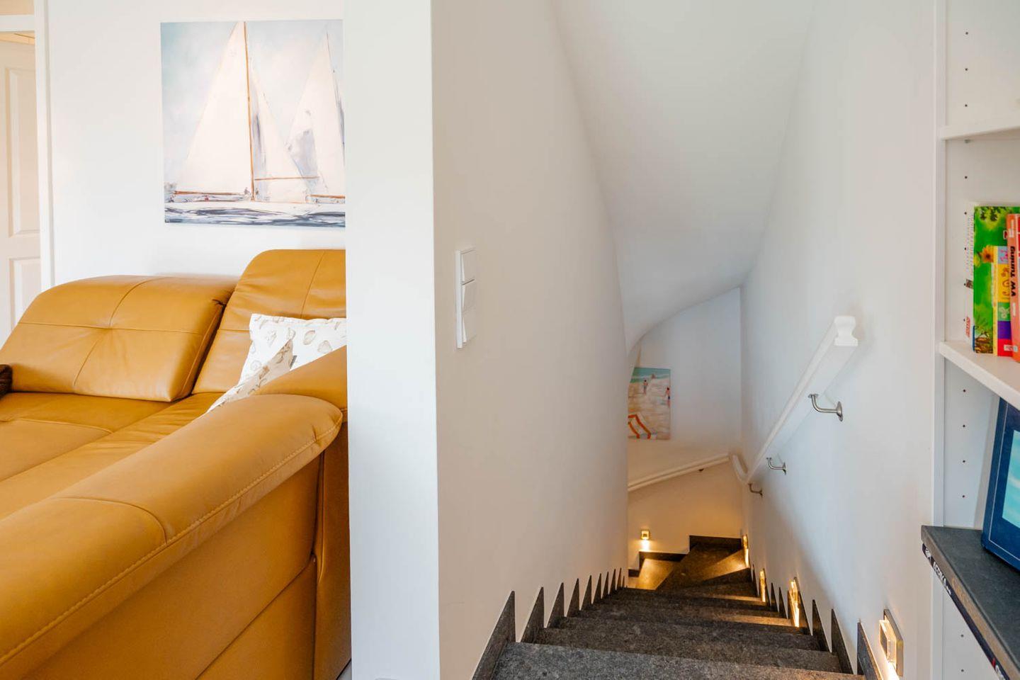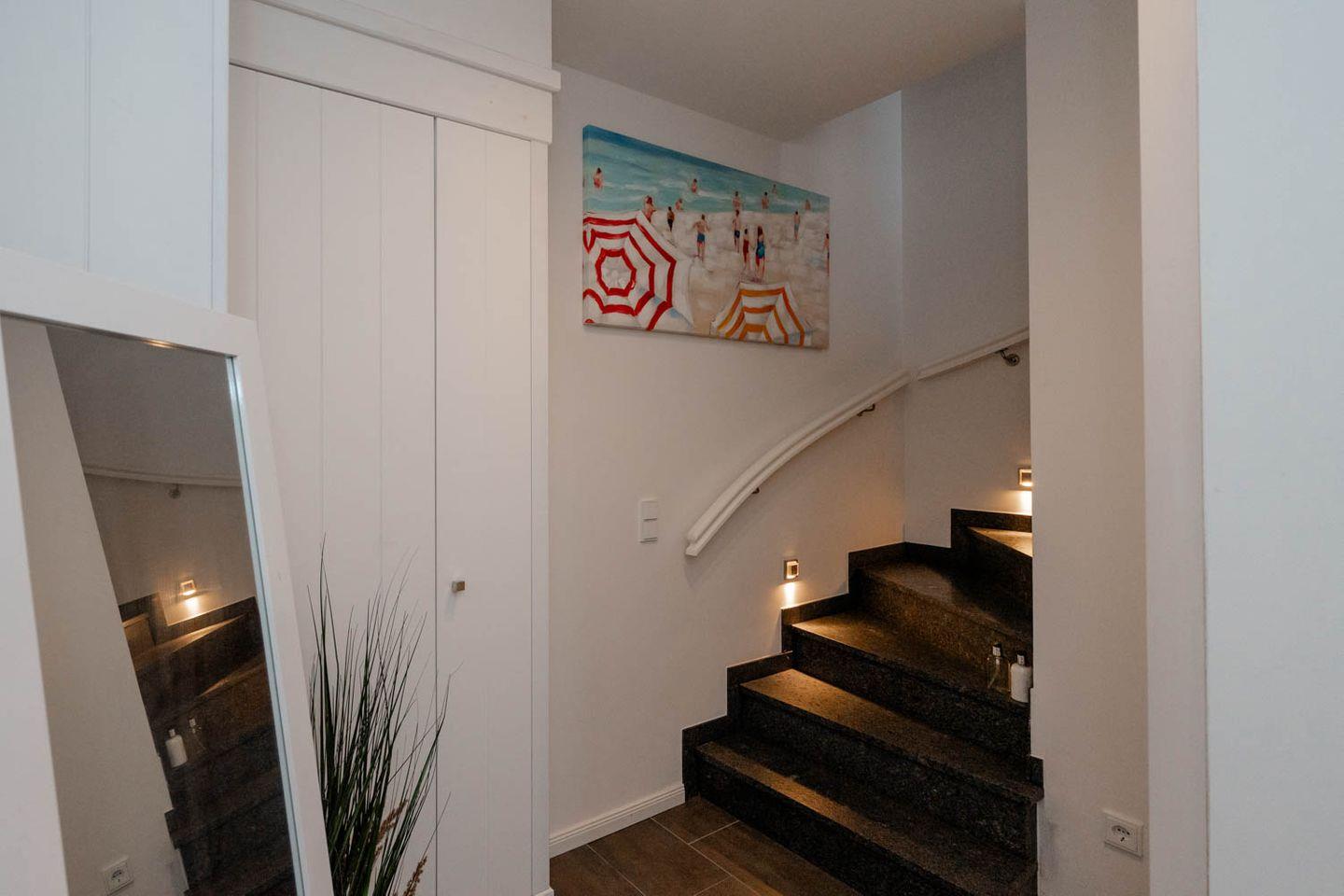 Im Erdgeschoss erwartet Sie eine einladende Atmosphäre mit einem großzügigen Wohnbereich und einer voll ausgestatteten Küche. Darüber hinaus stehen Ihnen hier zwei Badezimmer zur Verfügung, die mit allen Annehmlichkeiten ausgestattet sind, die Sie für einen entspannten Aufenthalt benötigen. Zusätzlich befindet sich eine Gästetoilette im Erdgeschoss, um Ihren Komfort noch weiter zu steigern.
