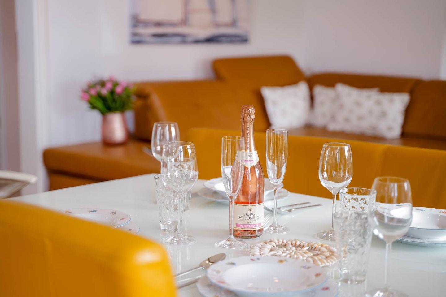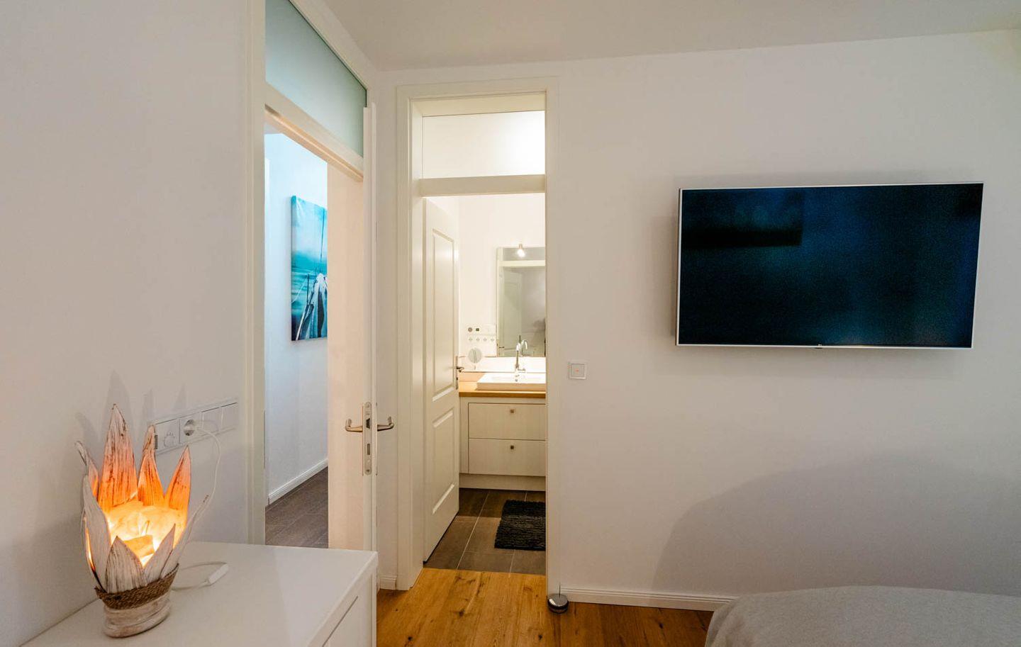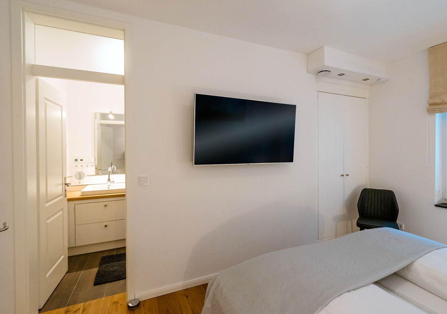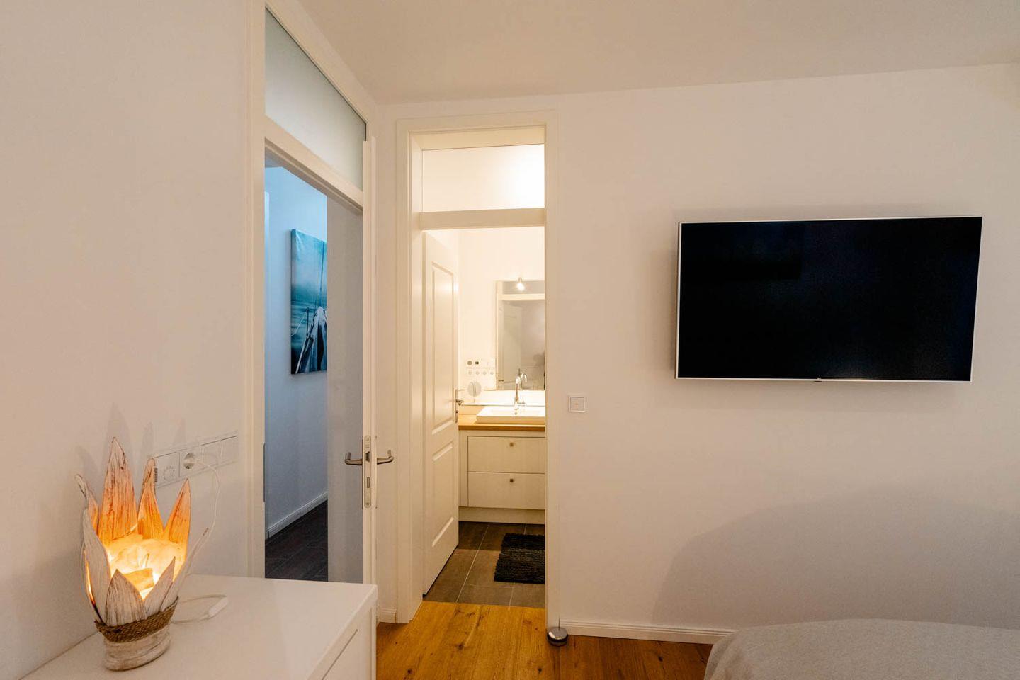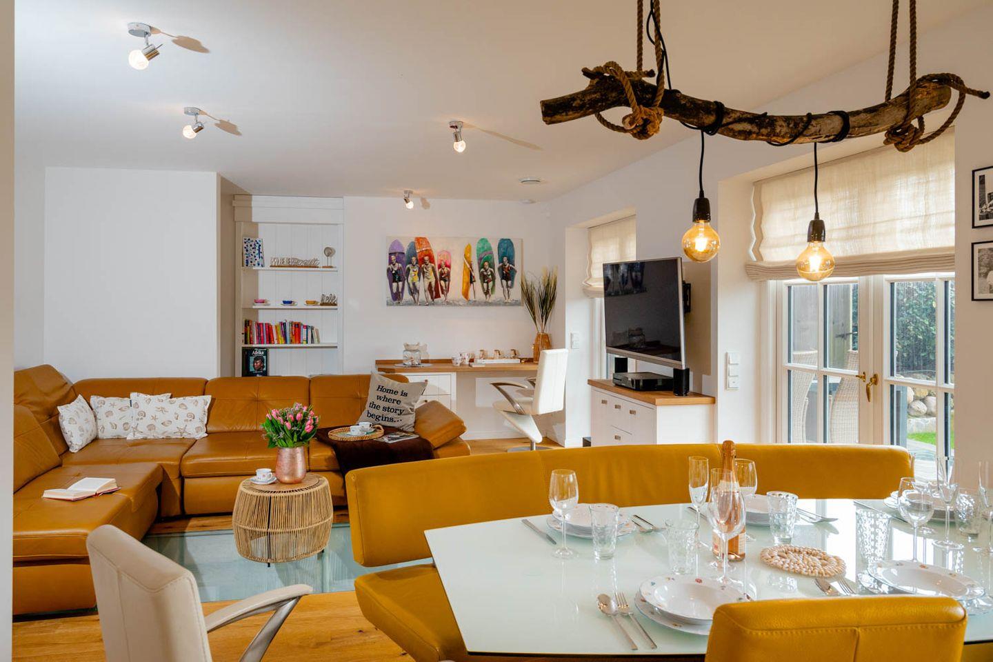 Im Erdgeschoss erwartet Sie eine einladende Atmosphäre mit einem großzügigen Wohnbereich und einer voll ausgestatteten Küche. Darüber hinaus stehen Ihnen hier zwei Badezimmer zur Verfügung, die mit allen Annehmlichkeiten ausgestattet sind, die Sie für einen entspannten Aufenthalt benötigen. Zusätzlich befindet sich eine Gästetoilette im Erdgeschoss, um Ihren Komfort noch weiter zu steigern.