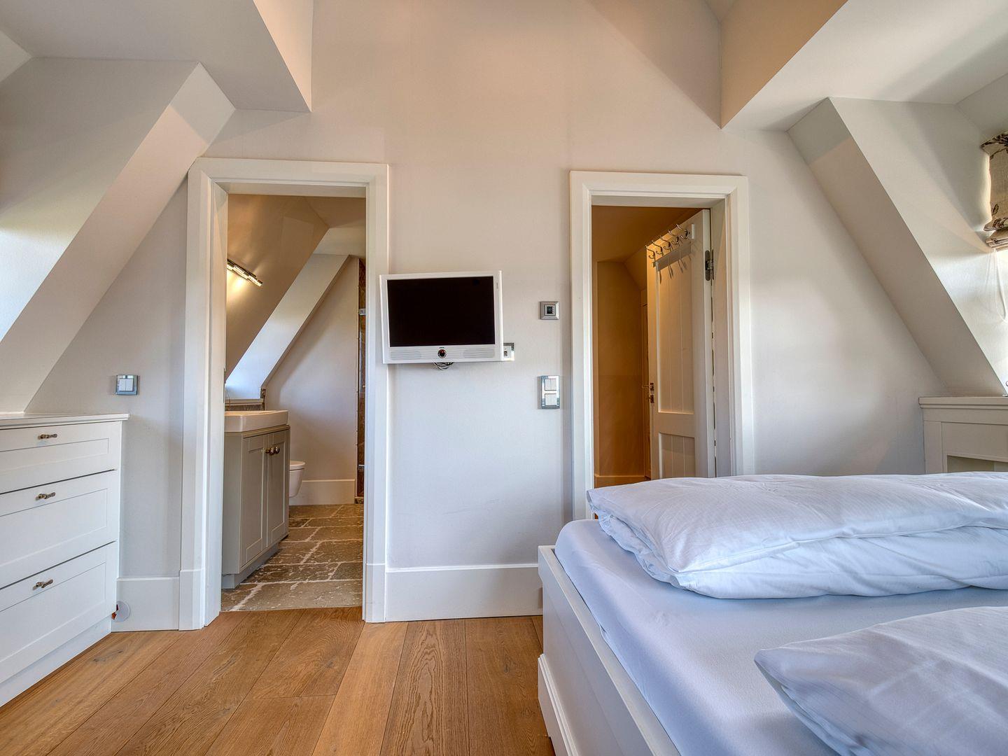 Drei Doppelschlafzimmer mit TV und Kleiderschrank. Ein weiteres Schlafzimmer mit einem großen Doppelstockbett, Kleiderschrank und viel Raum zum Spielen eignet sich hervorragend für Kinder und Jugendliche. Alle Betten sind mit hochwertigen Matratzen und komfortablen Oberbetten ausgestattet. Die Schlafzimmer lassen sich hervorragend abdunkeln und bieten hohen Schlafkomfort.