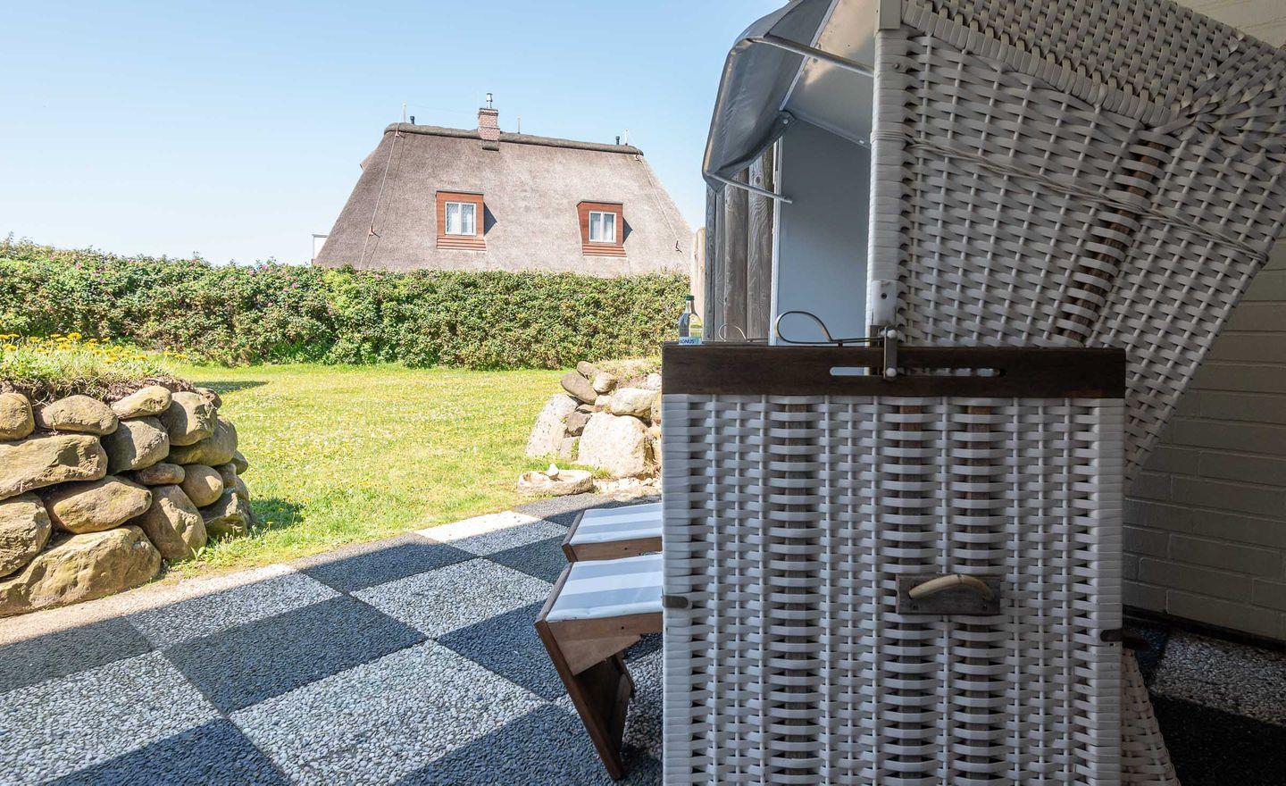 Von hier gelangen Sie auf die großzügige und neu möblierte West-Terrasse mit eigenem Saisonstrandkorb (ca. April bis Oktober) und können dem Meeresrauschen der Nordsee lauschen.