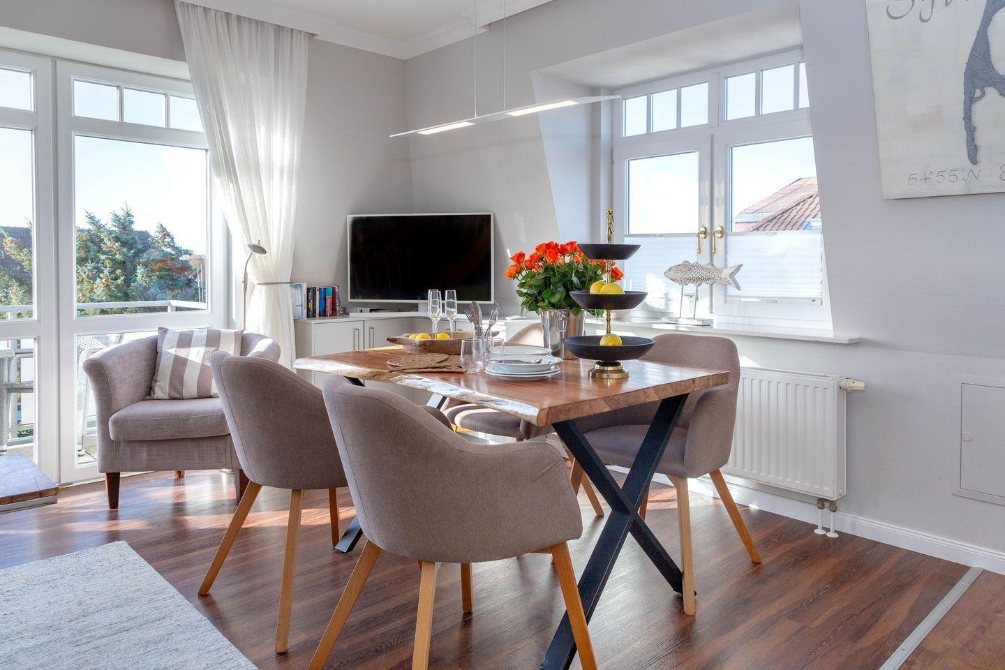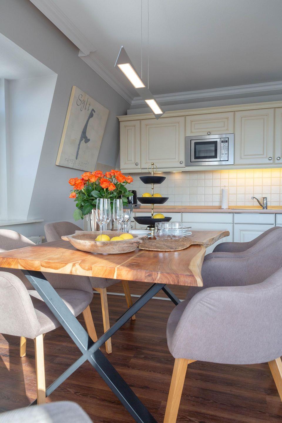 Es erwartet Sie ein exquisites, sehr modernes Design in heller Atmosphäre, in grauen und cremefarbenen Tönen gehalten, mit ganz viel Liebe zum Detail gestaltet. Dieses Urlaubsdomizil ist lichtdurchflutet, und der Blick durch die Fenster präsentiert schöne Ausblicke. In diesem vorzüglichen Ambiente zu wohnen, bedeutet Urlaub von Anfang an!