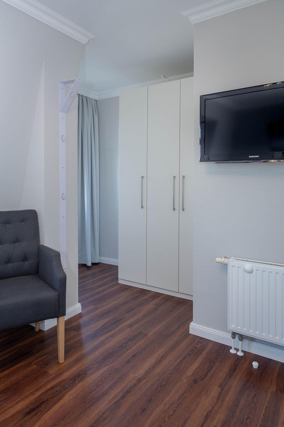 Die Schlafzimmer bieten Ihnen behagliche Boxspringbetten zum Träumen an. Zur Unterhaltung steht Ihnen in diesen Zimmern auch ein Fernseher zur Verfügung.