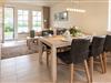 Großzügiger Essbereich mit fließendem Übergang zur gemütlichen Sofaecke mit Sessel, TV und Blick auf die Terrasse und in den ruhigen Garten.