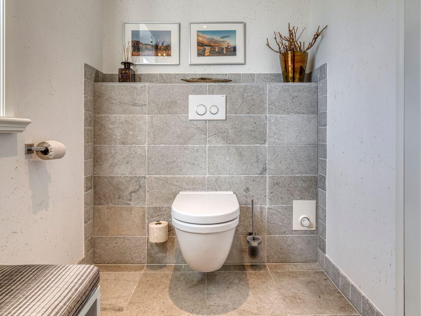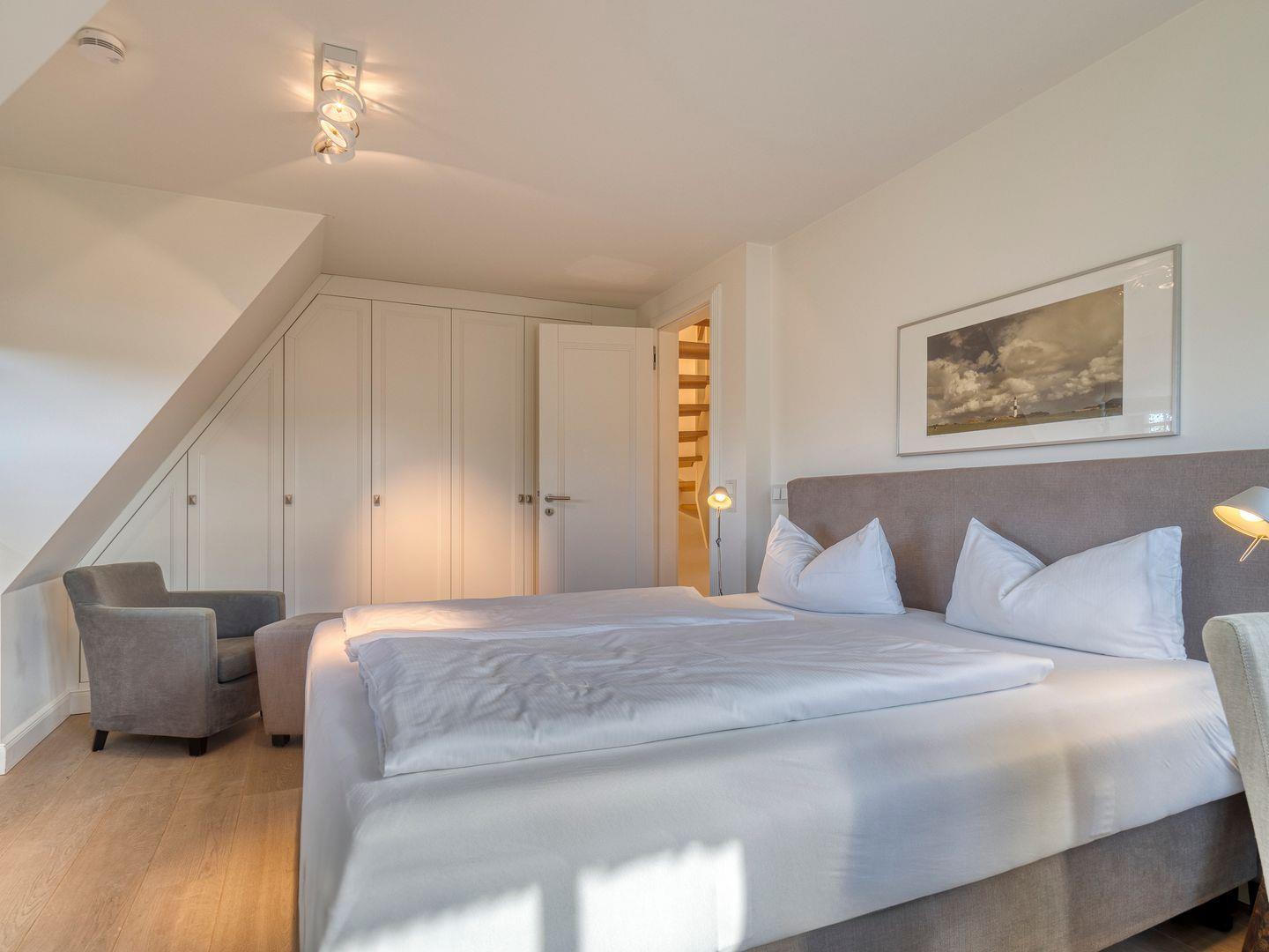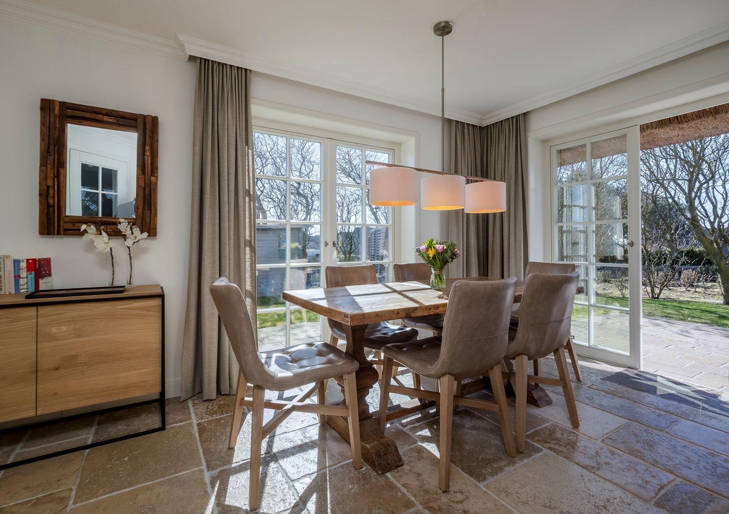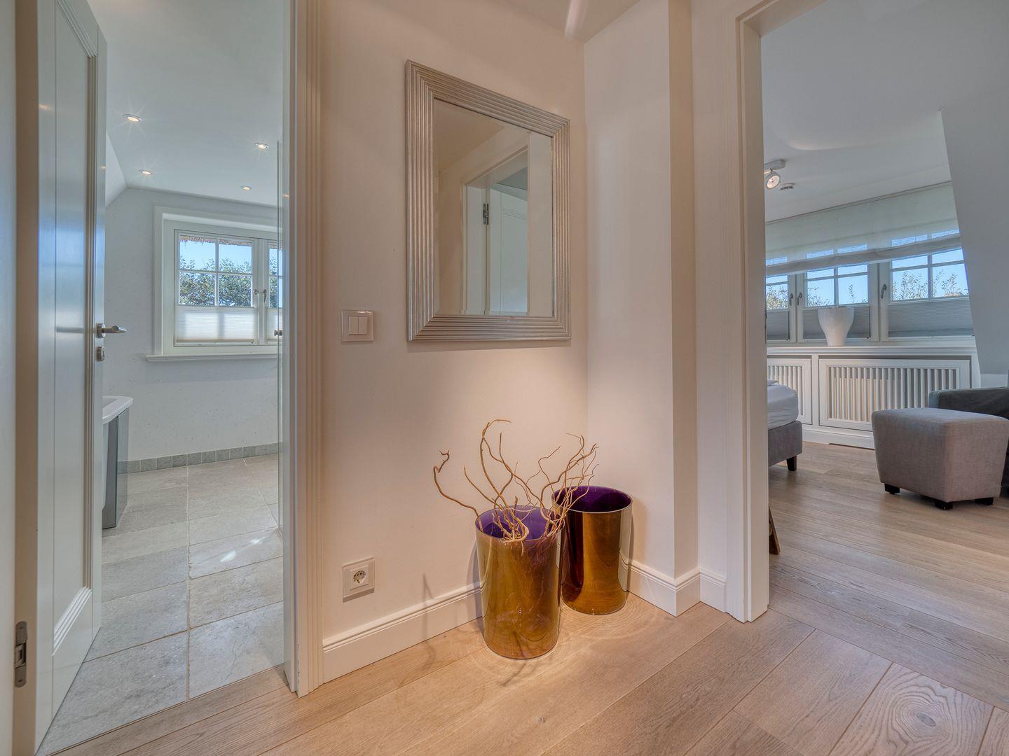 Dieses stilvolle Feriendomizil unter Reet bietet viel Platz auf drei Ebenen. Im Erdgeschoss befinden sich neben einem sehr großzügigen Eingangsbereich: