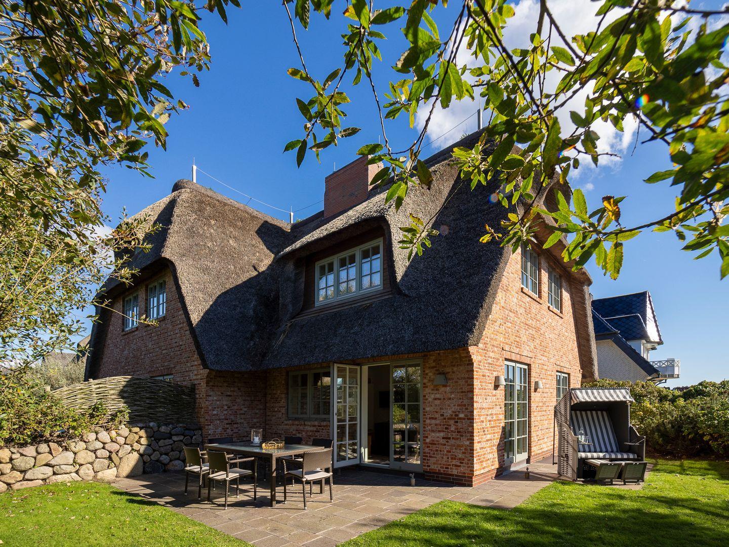 Luxusanwesen auf Sylt in ruhiger Lage bietet den vollen Urlaubskomfort unter Reet für 5 Personen. Hausteil mit Garten und Südwest-Terrasse.
