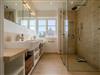 Badezimmer 2: Große und bodentiefe Dusche, Doppelwaschbecken, WC und Fenster.