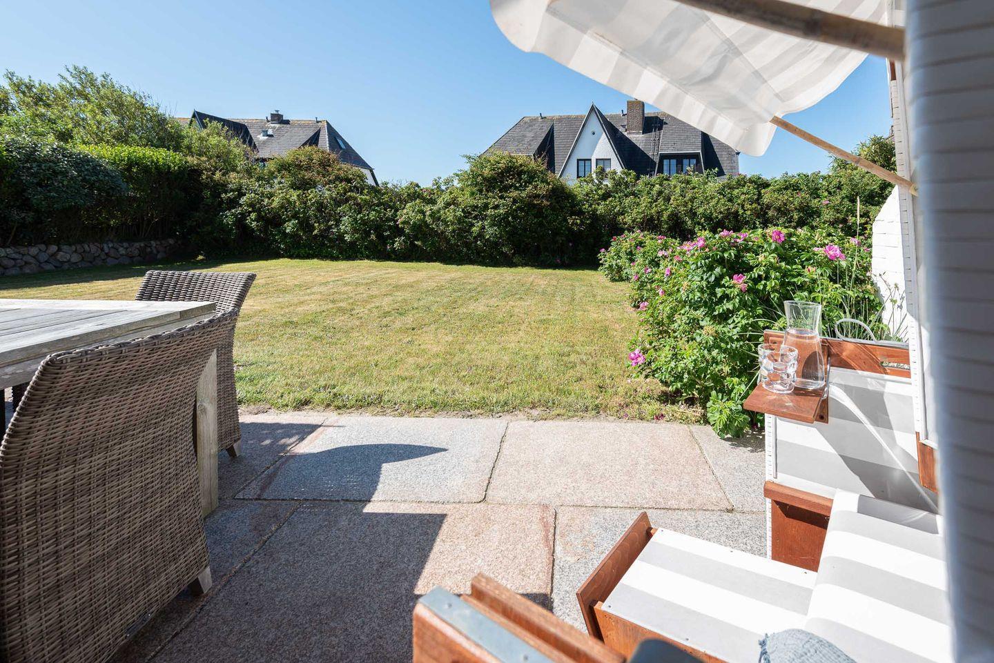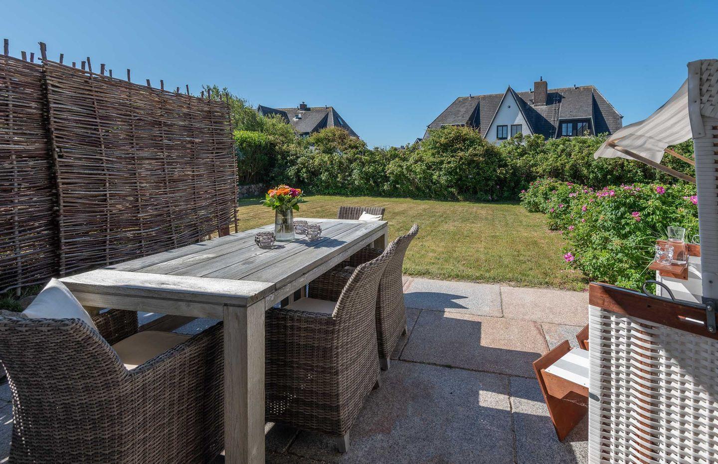 Sie haben direkten Zugang zur sonnigen Süd-Terrasse und dem eingewachsenen Garten mit Gartenmöbeln und Saison-Strandkorb.