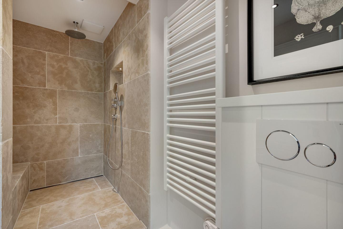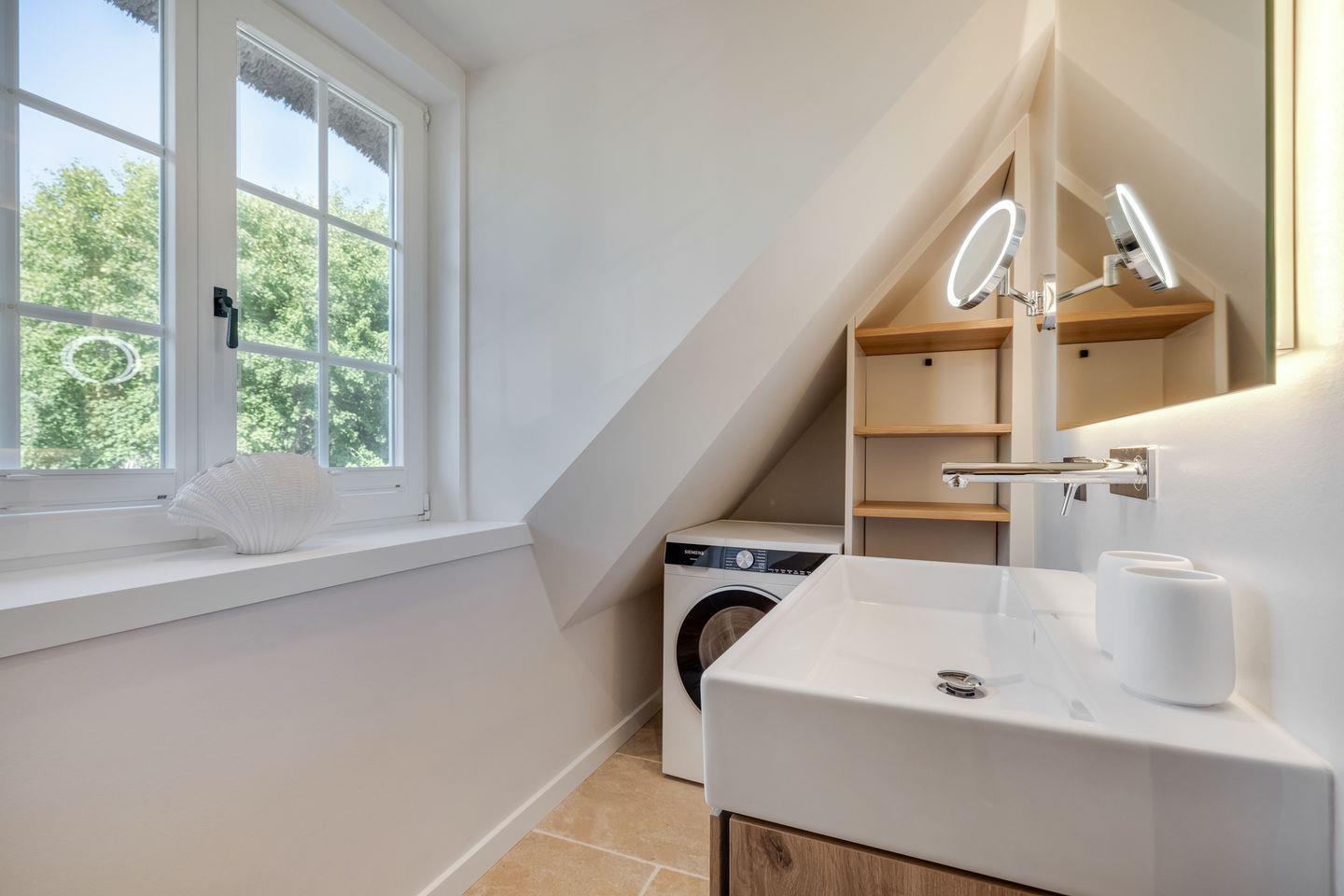 Das Badezimmer der Unterkunft ist modern eingerichtet und verfügt über eine bodengleiche Dusche, ein Waschbecken, ein WC sowie einen Haartrockner. Weiterhin steht Ihnen ein Gäste-WC zur Verfügung.