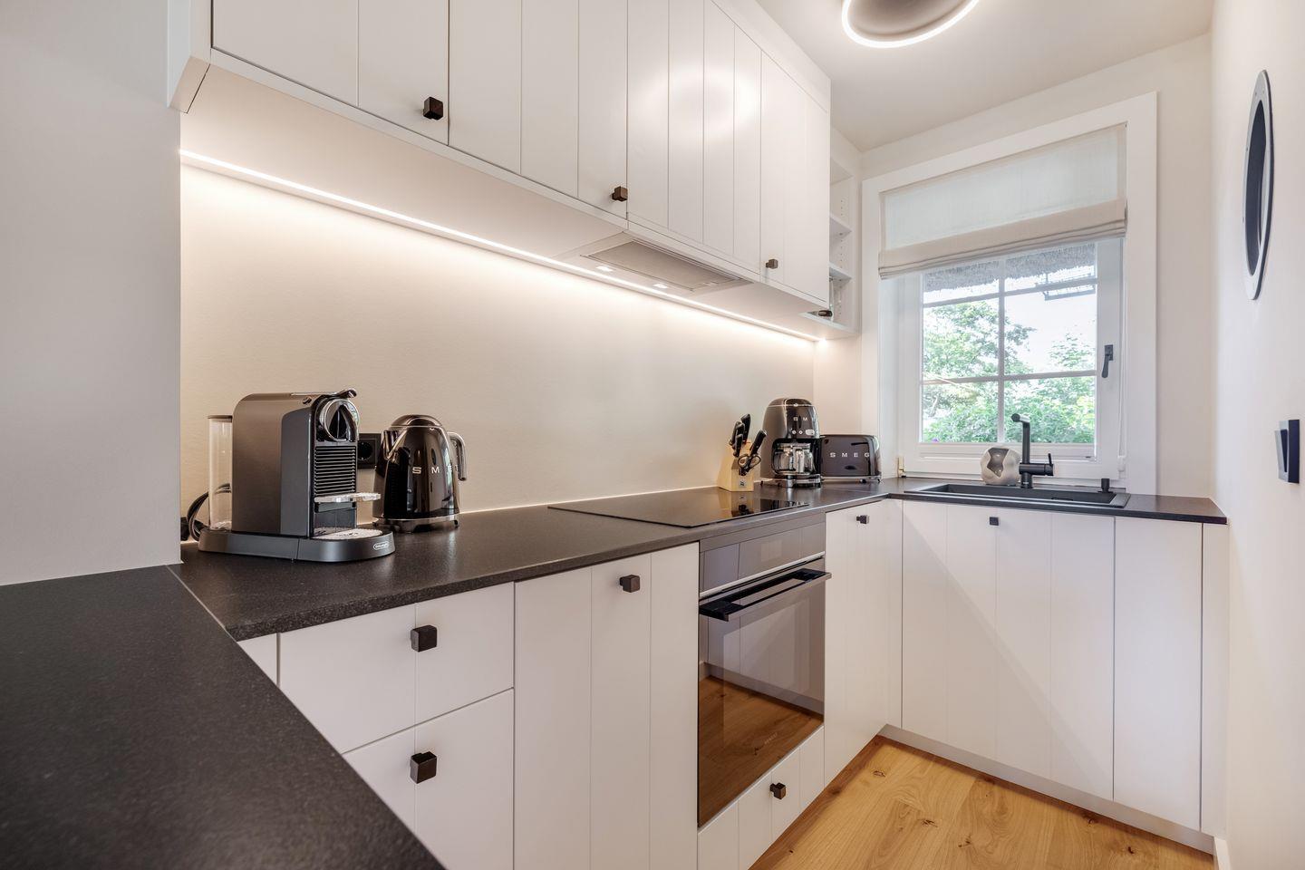 Der offene Wohnbereich mit angrenzender Küche ist der zentrale Treffpunkt der Wohnung. Ausgestattet mit einem modernen Induktionsherd, einer Spülmaschine und einer hochwertigen Nespresso-Espressomaschine, erfüllt die Küche alle Ansprüche an Selbstversorger. Genießen Sie Ihre Mahlzeiten am Esstisch oder auf der gemütlichen Sofaecke, die mit einem digitalen TV-Anschluss ausgestattet ist. WLAN ist ebenfalls verfügbar, sodass Sie auch während Ihres Aufenthalts online bleiben können.