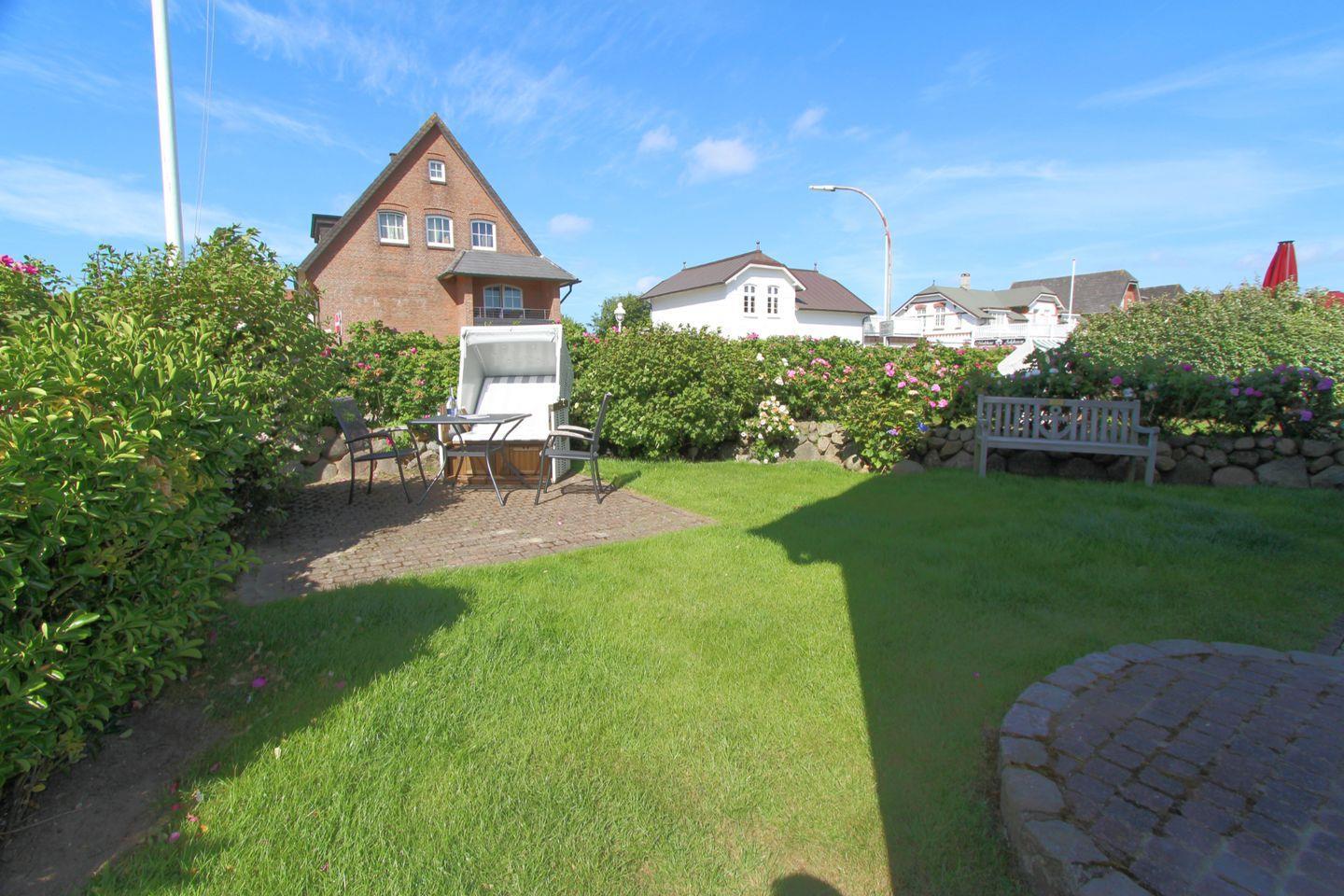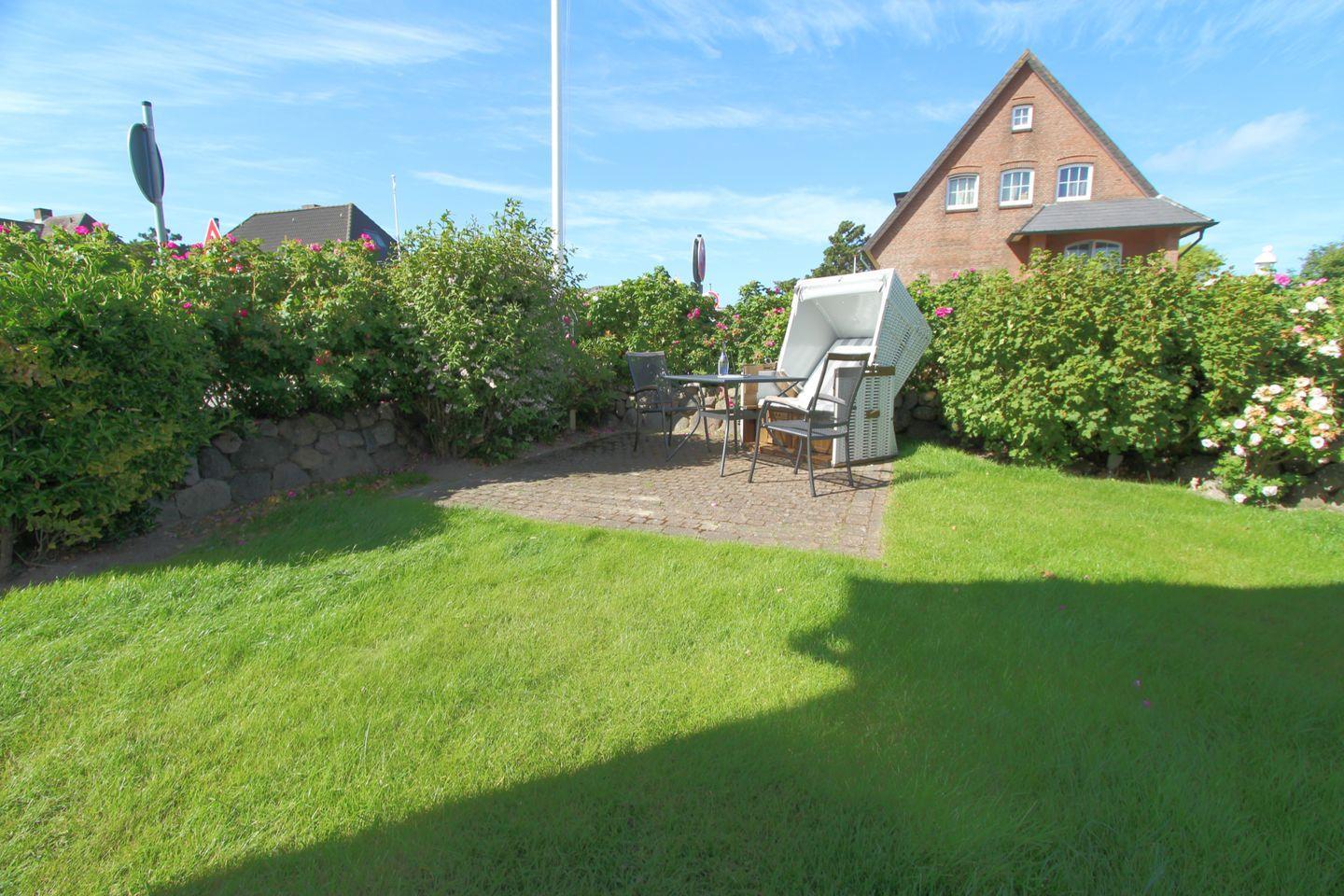 Gemütliches 2-Zimmer-Appartement im Parterre des schönen Sölring Hüs, nur wenige Gehminuten zum Strand. Hier genießen Sie Ihren Urlaub mit einem direkten Zugang zum eigenen Gartenanteil und Strandkorb.