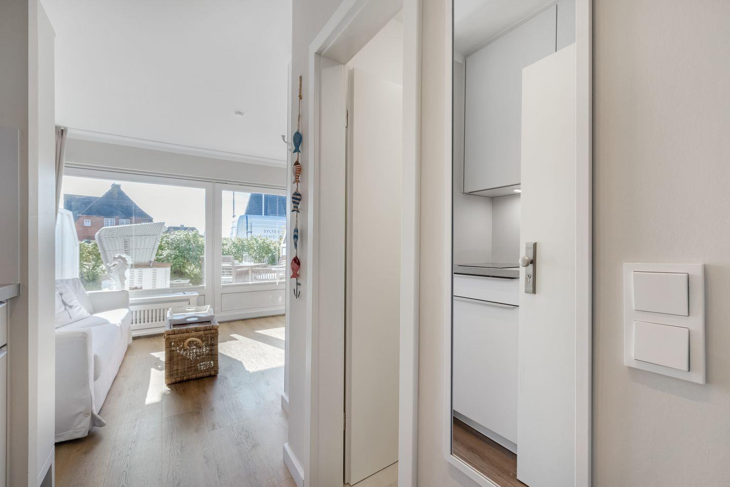 Die Ferienwohnung Dünenkuhle, App. 17 empfängt Sie in attraktiver Lage in Wenningstedt-Braderup auf Sylt, nur etwa 500 Meter vom Strand und Meer entfernt. Ihr Apartment befindet sich im Parterre eines modernen Wohnhauses und bietet auf 24 m² eine geschmackvolle und praktische Unterkunft für Erholungssuchende und Aktivurlauber.