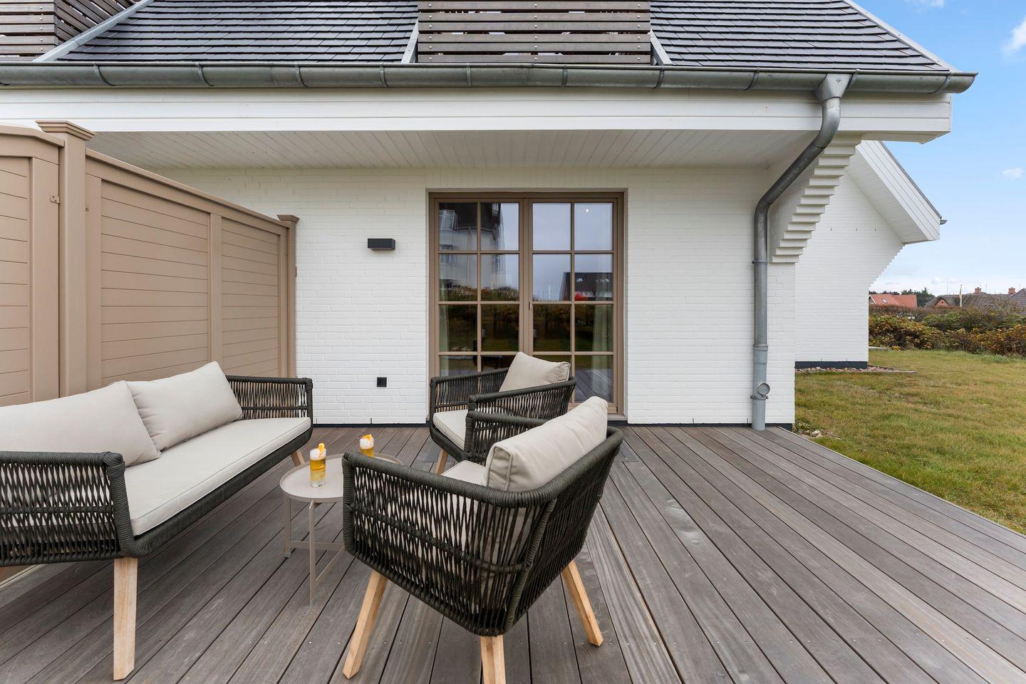Die möblierte Westterrasse ist der perfekte Rückzugsort für sonnige Nachmittage und laue Abende. Hier genießen Sie die frische Nordseeluft, spüren die Wärme der Sonne und lassen die Gedanken treiben.
